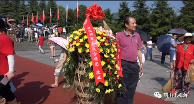 上午九点,晴空万里,艳阳高照。伴随着深情的《献花曲》音乐响起,威武的礼兵迈着坚定有力的步伐,。合唱团代表缓步上前,仔细整理花篮上的红色缎带。,表达深切缅怀之情。接着,,齐声合唱《东方红》。