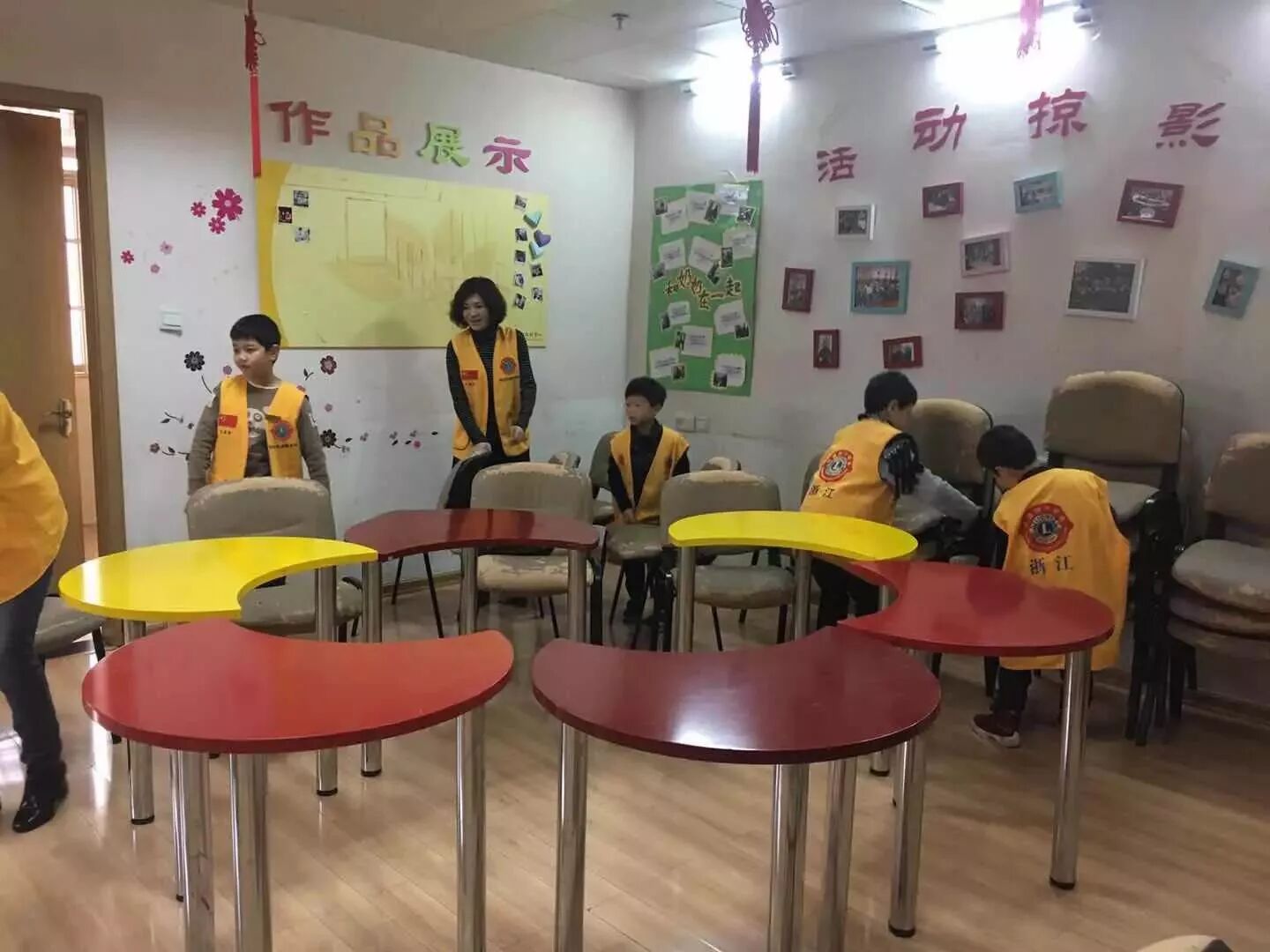 这次圣诞前夕来杭州社会福利中心孝亲敬老服务的多了好些“小狮子”,他们搬椅子、摆桌子,做着活动前的场地布置工作。