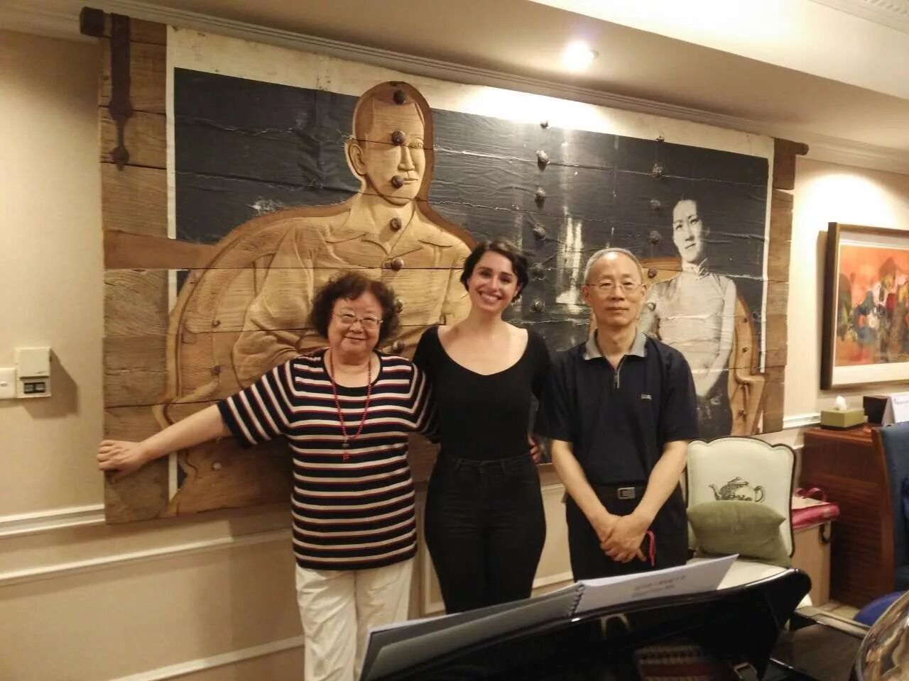 陈扬骎、聂梦茜夫妇与外国歌手在排练现场