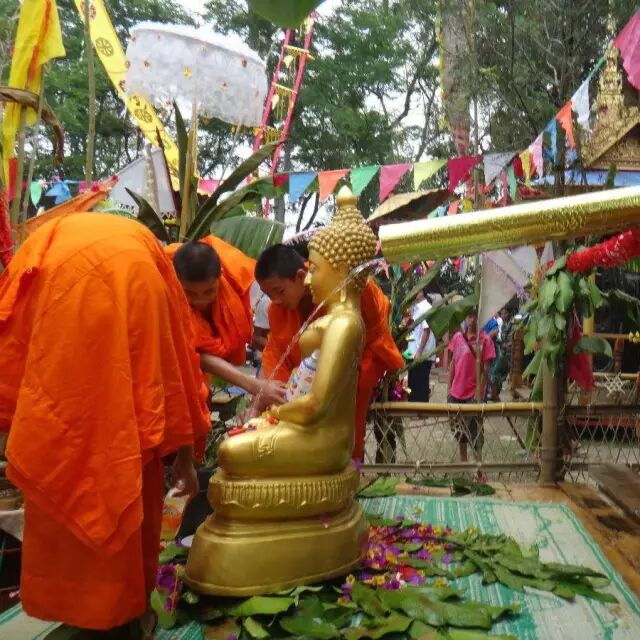 这一天清早人们就要采来鲜花绿叶到佛寺供奉,担来清水“浴佛”,大家为佛像洗尘,祈求神灵保佑在新的一年里身体健康,“浴佛”完毕大家祝福性的相互泼水就开始了。