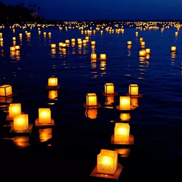 当太阳西沉,澜沧江被夜色笼罩,整个江面和空中繁星点点。新年的第一晚,傣家人有放水灯许心愿的传统,大家都会来到澜沧江边点燃自己亲手制作的水灯或孔明灯,虔诚的许下美好的心愿,让一盏盏灯火照亮江面。