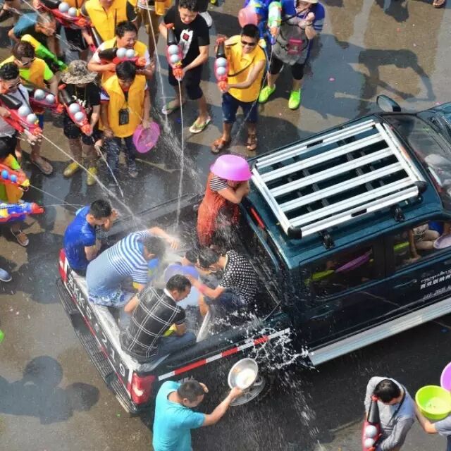 15日“泼水节”。这一天的主题就是泼水!一家人会在路边准备好足够的水,然后给过往的车辆、行人疯狂泼水,有些路过的司机还会特意停下来被“泼”。场面自然是壮观的不行!