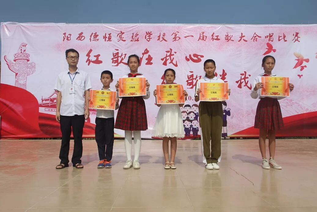 经过激烈的角逐,最终703班和202班夺得了本次比赛的一等奖。704、601、302三个班级获得二等奖,602、803、501、502、401等五个班级获得了三等奖。603、303和102班级获得优秀奖。比赛结束后,学校领导走上舞台,为比赛获奖的班级颁发了奖状。在全体到场家长和师生们热烈的掌声中,红歌大合唱决赛圆满结束。