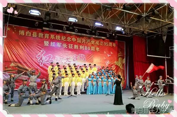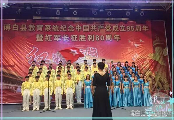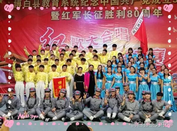 为纪念中国共产党成立95周年暨红军长征胜利80周年,回顾党领导、建设、改革的光辉历程,缅怀革命先辈的丰功伟绩,发掘长征精神的历史内涵和时代价值,传承和弘扬以爱国主义为核心的民族精神,,博白县教育局举行博白县教育系统“纪念建党95周年长征胜利80周年”大合唱比赛, 比赛分小学、初中、高中三个组别进行比赛和评奖。总决赛于12月28日举行,王力中学参赛曲目混声合唱伴舞《太行山上》荣获总决赛特等奖!
