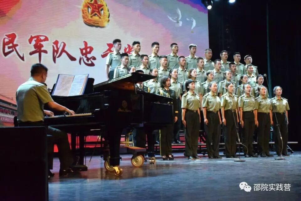 6月20日中午,,迎接党的十九大的胜利召开,我营于邵阳学院星光剧院举办“人民军队忠于党”歌曲大合唱,大祥区人武部政委贺光明、音乐舞蹈学院党总支书记陆霞、邵阳学院学工部(武装部)刘长征副部长、音乐舞蹈学院副院长金娟飞、音乐舞蹈学院党总支副书记刘长爱等领导和国防教育实践营的全体队员和大祥区人武部的民兵到场观看。