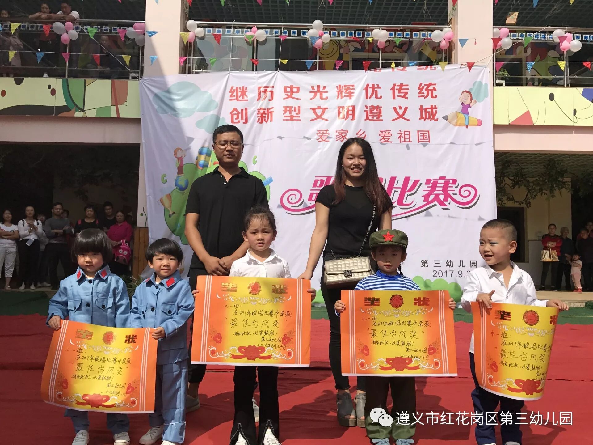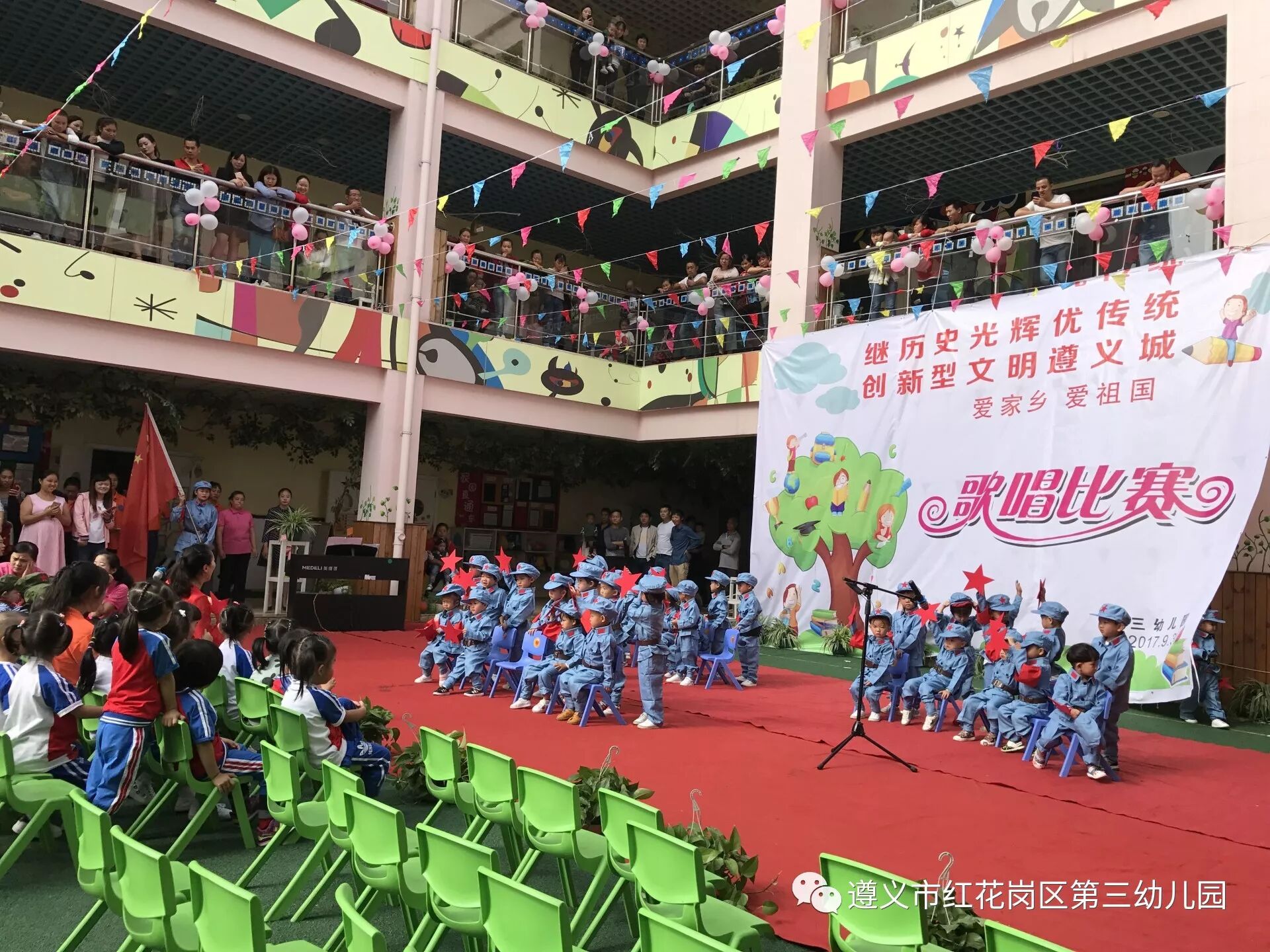 为进一步激发广大师生及家长朋友们的热爱祖国之情。我园于2017年9月29日上午9点30分开展了“爱祖国,爱家乡”歌唱比赛活动。