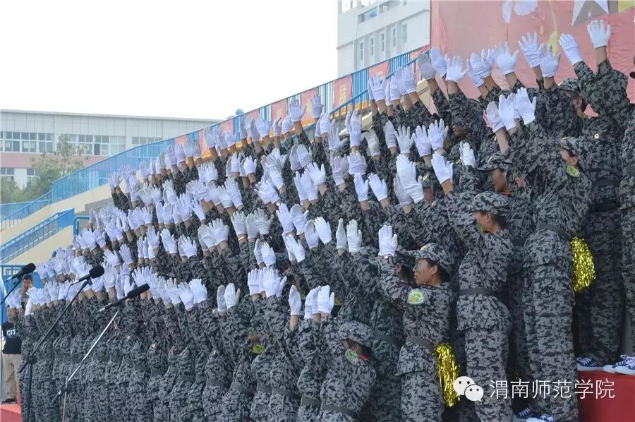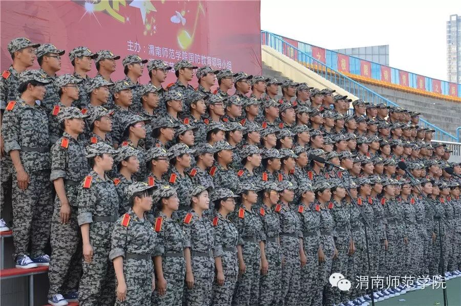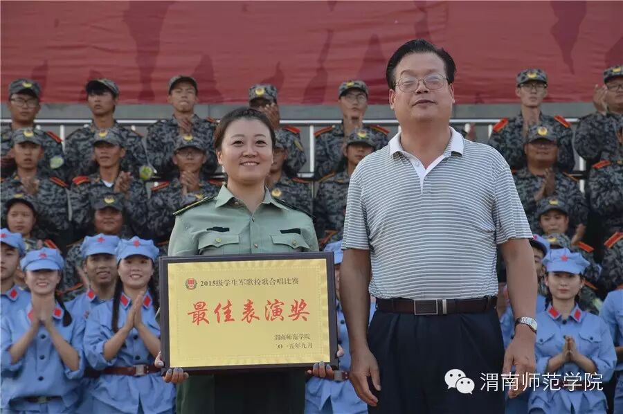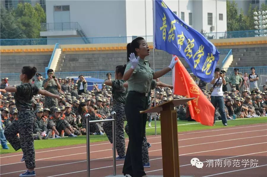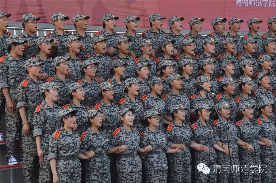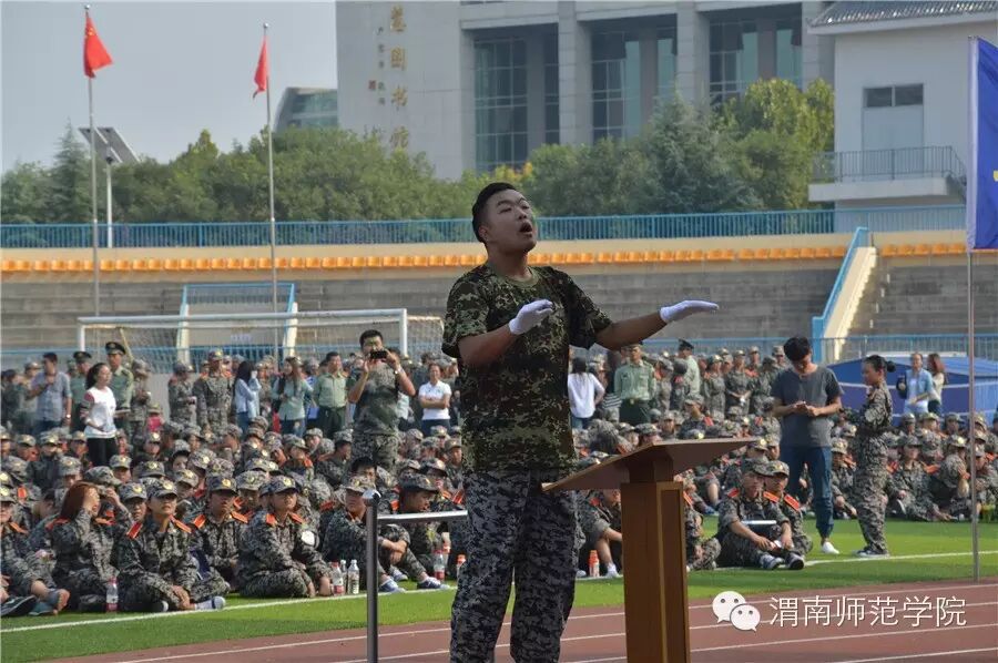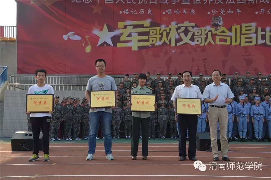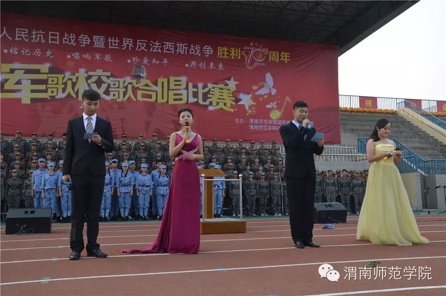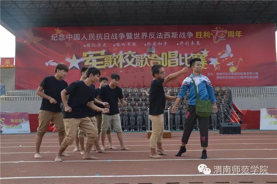 9月21日14点30分,渭南师范学院纪念中国人民抗日战争暨世界反法西斯胜利70周年『军歌校歌合唱比赛』在学校田径场隆重举行。比赛中,2015级新同学们歌声嘹亮,气势恢宏,展现出新时代年轻人的飒爽英姿。11个二级学院的合唱队伍风采各异,形式多样,用优秀的演唱赢得在场观众阵阵热烈掌声。