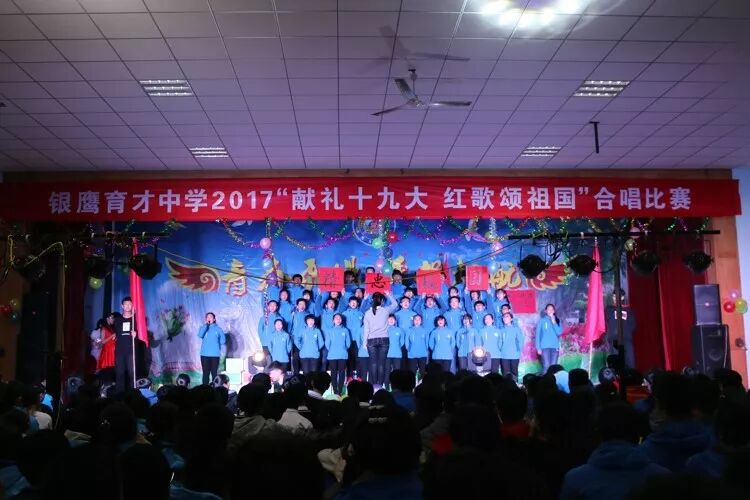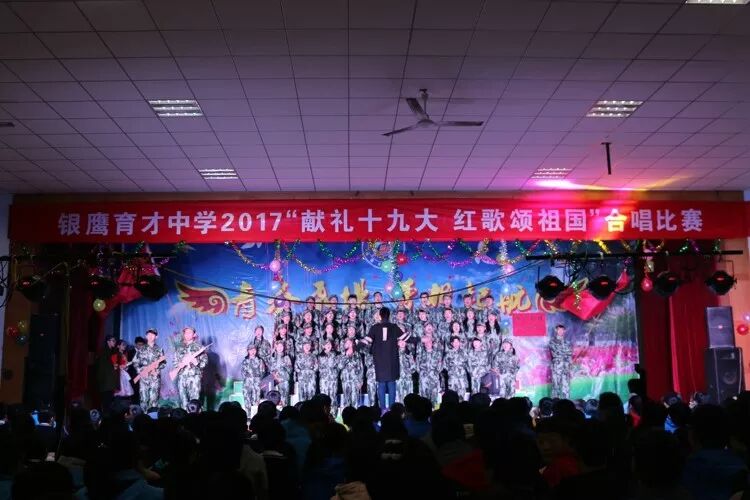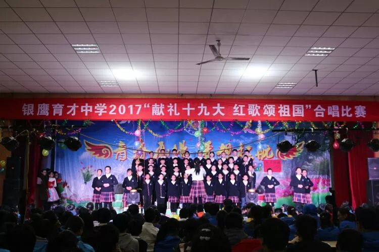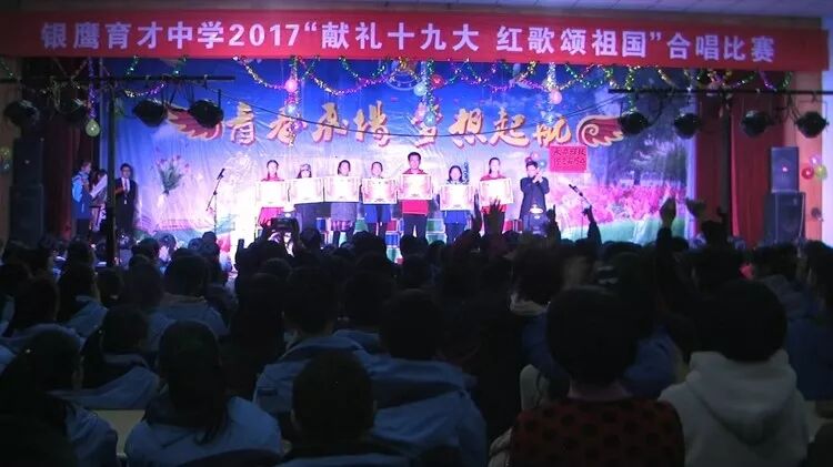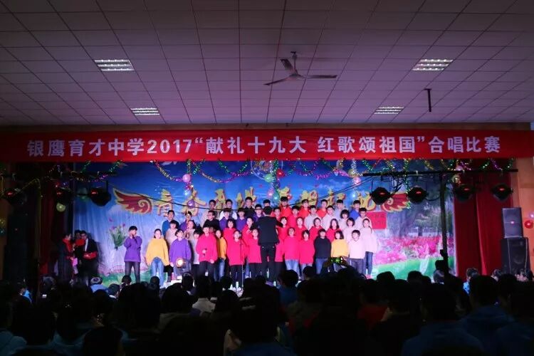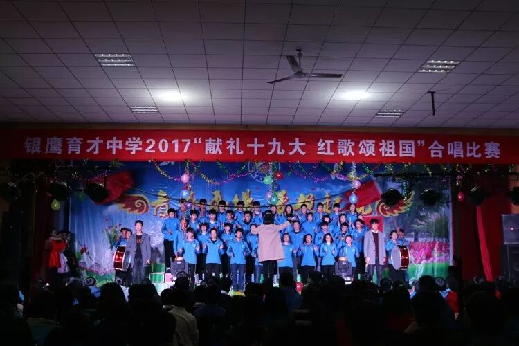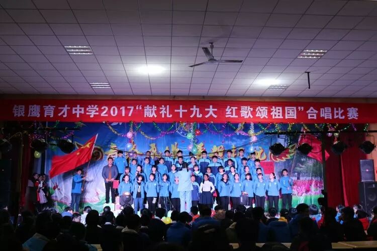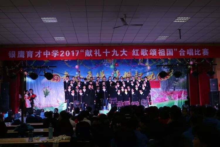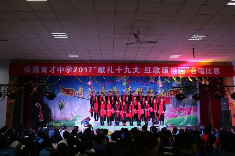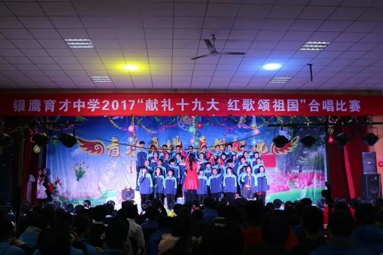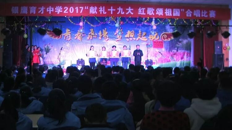 12月28日晚,银鹰育才中学“献礼十九大•红歌颂祖国”大型主题合唱比赛在学校多功能厅举行。全校26个班级参加比赛,部分家委会成员代表参加观看。合唱比赛由17级1班王宝琦、16级2班李振一、16级8班李乐源、16级7班宿春雨同学主持。