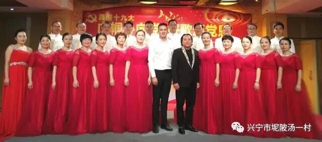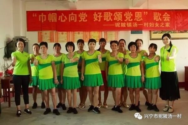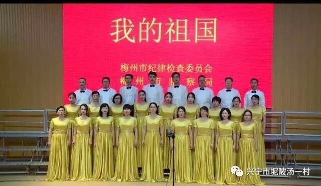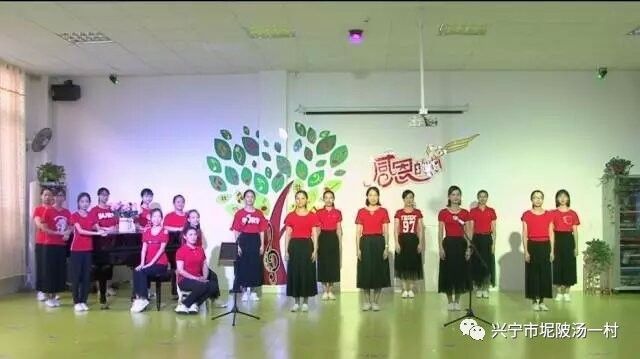 兴宁市坭陂镇汤一村妇女之家合唱团,演唱歌曲《歌唱祖国》。