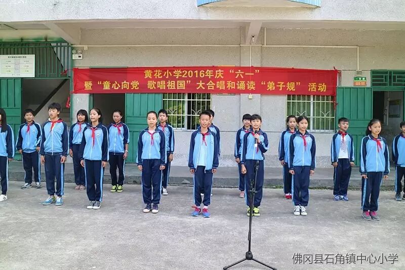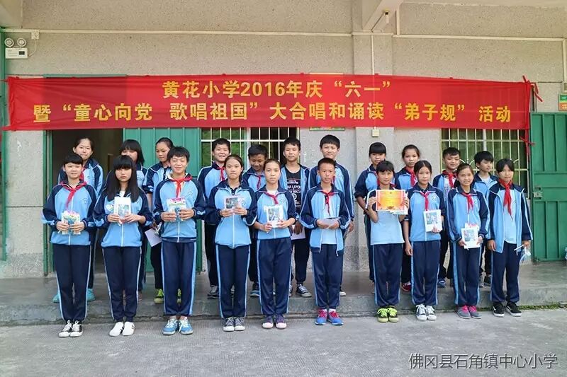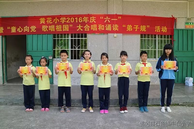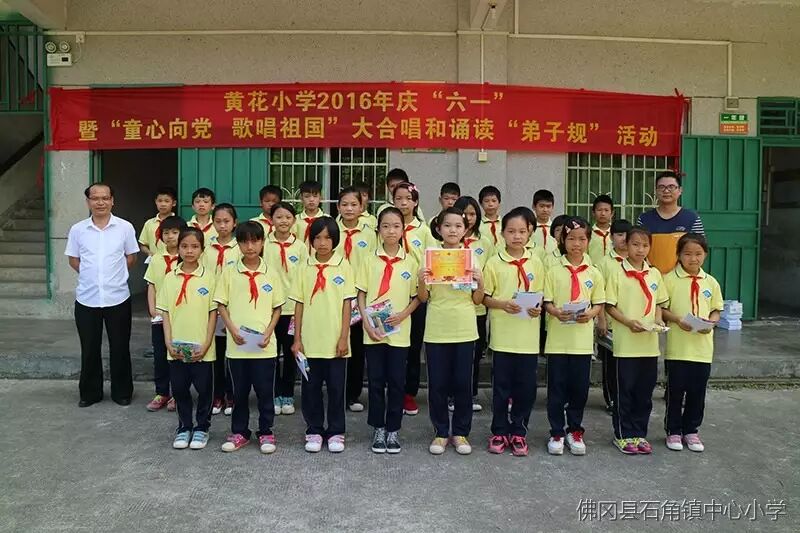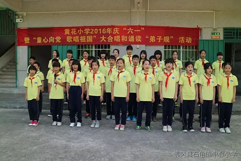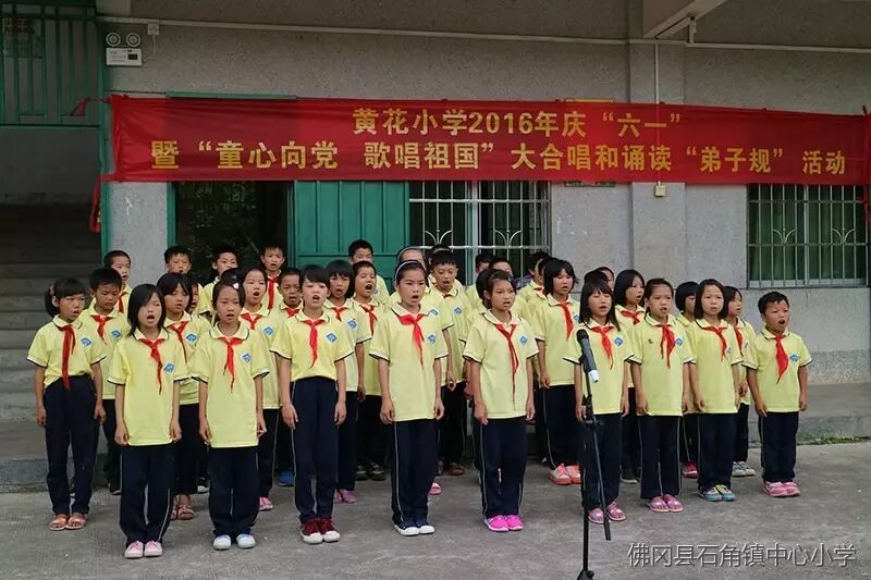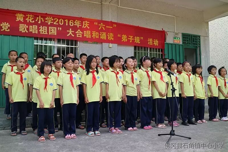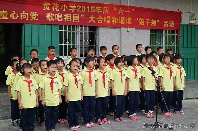 2016年5月26日,石角镇黄花小学举行了“童心向党、歌唱祖国”大合唱和诵读《弟子规》,师生同乐庆六一文艺汇演庆祝属于广大少年儿童的节日。