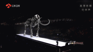 晚会现场,在歌手李健表演时,一只“大蓝鲸”从“海面”腾空而起,闪转腾挪之后,一头扎入“海”中,“水花”四溅,栩栩如生,现场气氛被推向高潮。林俊杰演唱《曹操》时,前奏响起,一头巨大的“猛犸象”再一次闯入观众的视线,林俊杰如王一般坐于象身,站立、跳跃、落下,一气呵成。