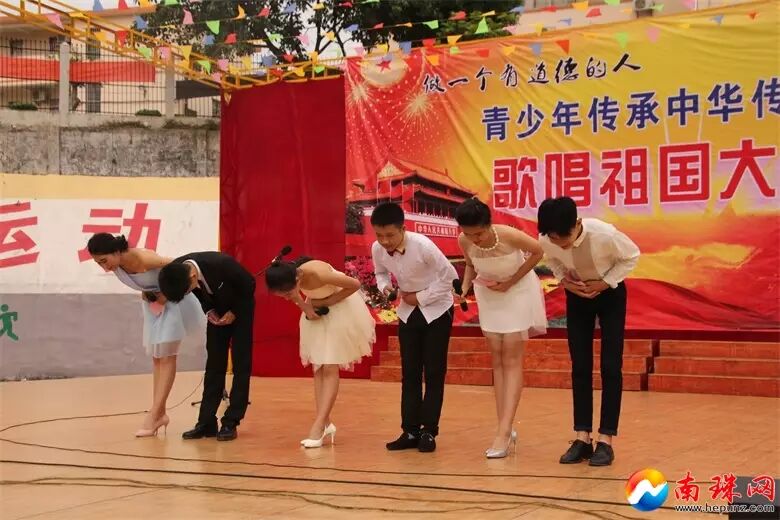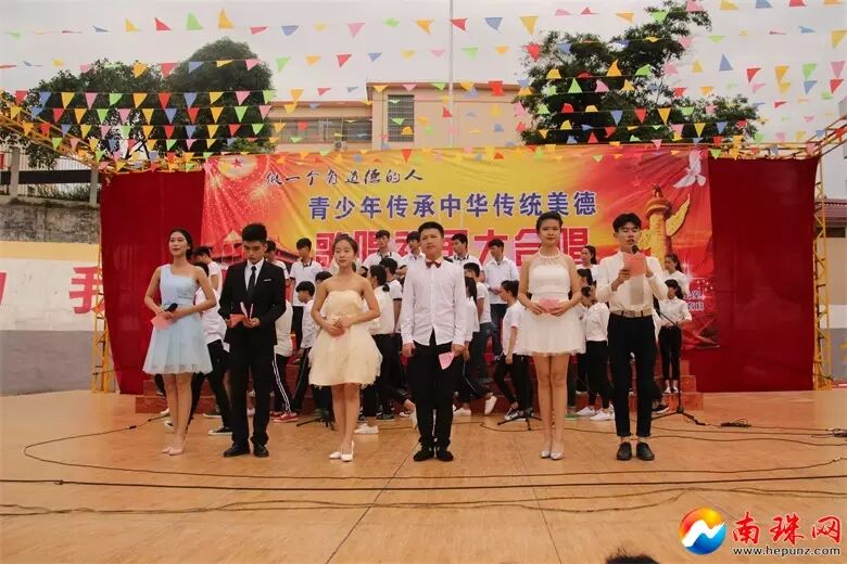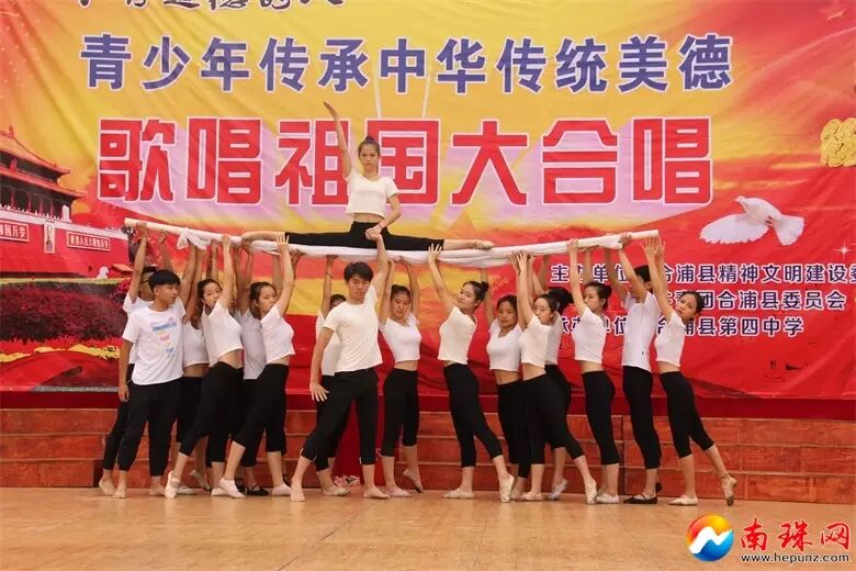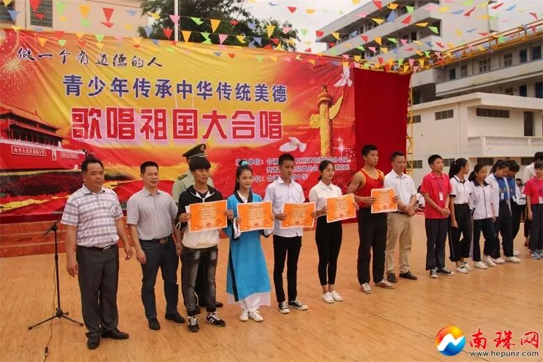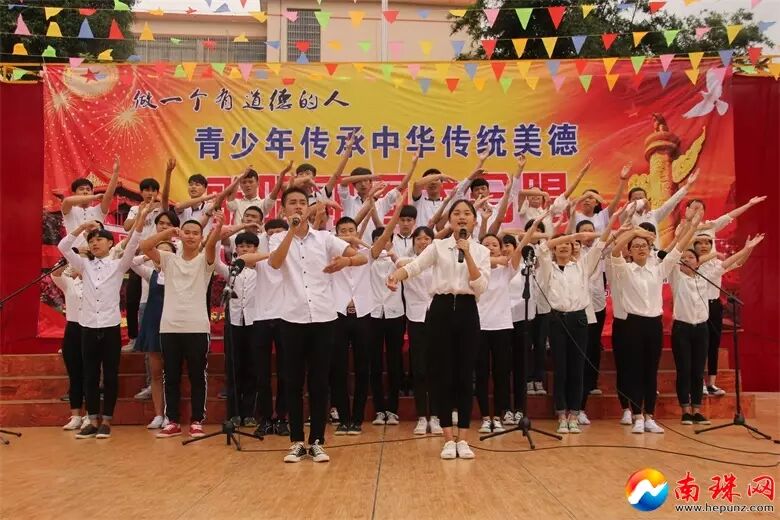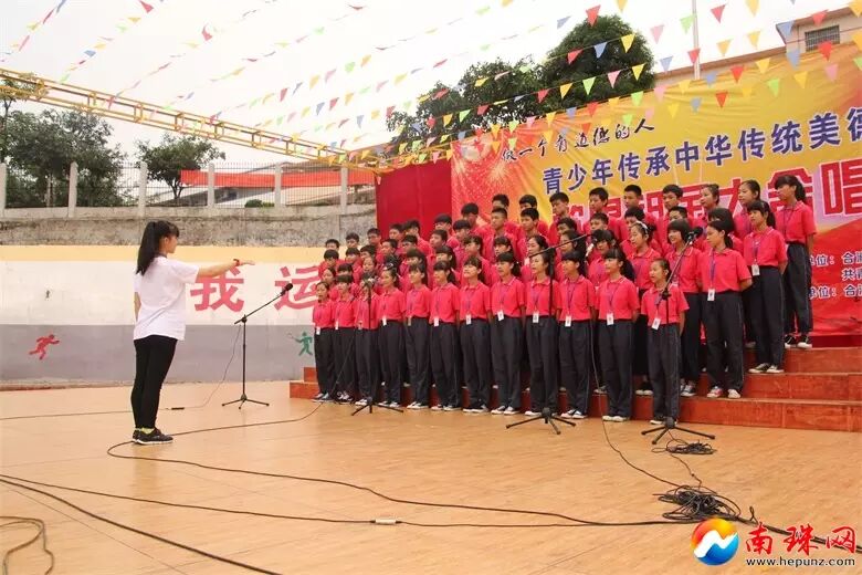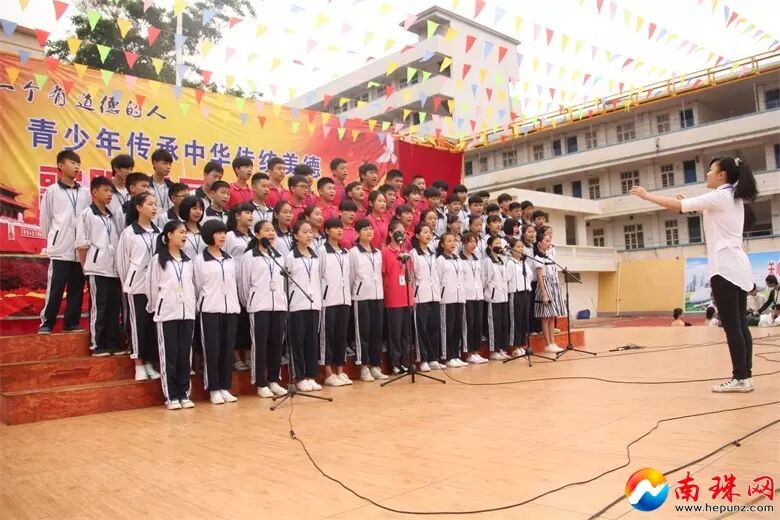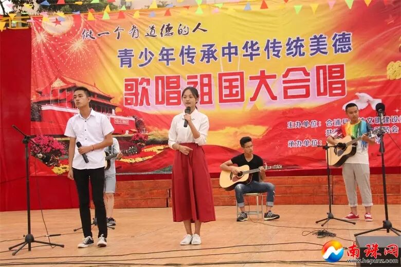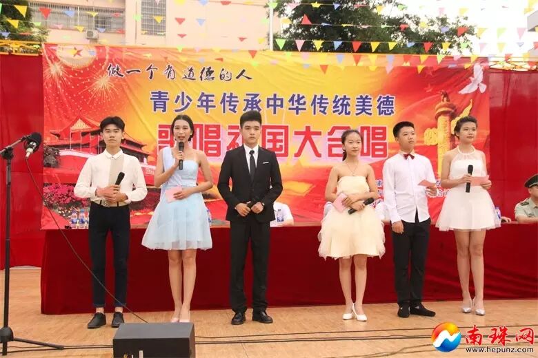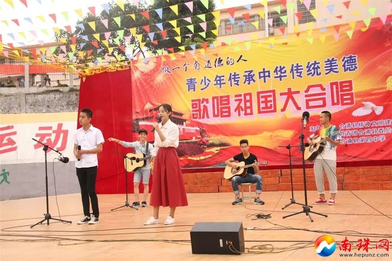 合浦县第四中学在这里举行“做一个有道德有人·青少年传承中华传统美德歌唱祖国"大合唱活动,希望同学们要用最动情的歌声表达对祖国的祝福。我们的国家有着光辉的历史、灿烂的文化和壮丽的河山,但也不能忘记祖国曾经蒙受过的屈辱。同学们,少年强则国强,,为了让祖国永远繁荣富强,我们要从现在做起,培养良好的公民道德。