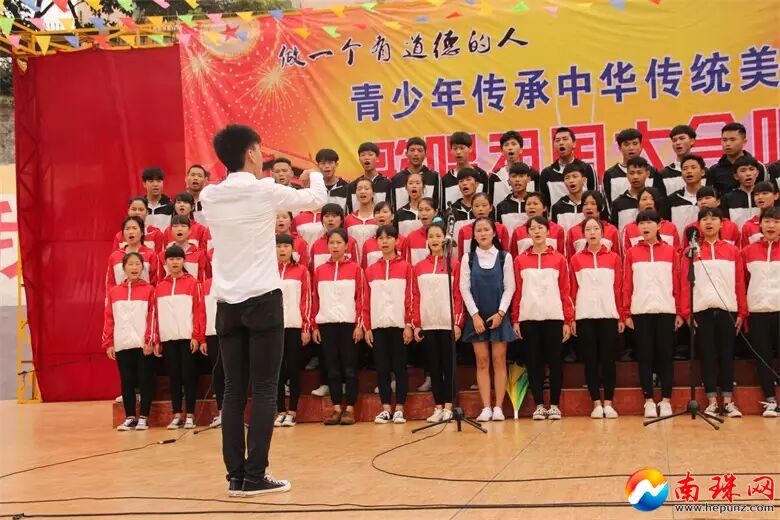 5月10日,夏雨纷飞,万物初醒,一声嘹亮的钟声划破了校园清晨的沉寂。一场充满爱国情怀的“做一个有道德的人·青少年传承中华美德歌唱祖国”大合唱即将在合浦四中运动场上举行。