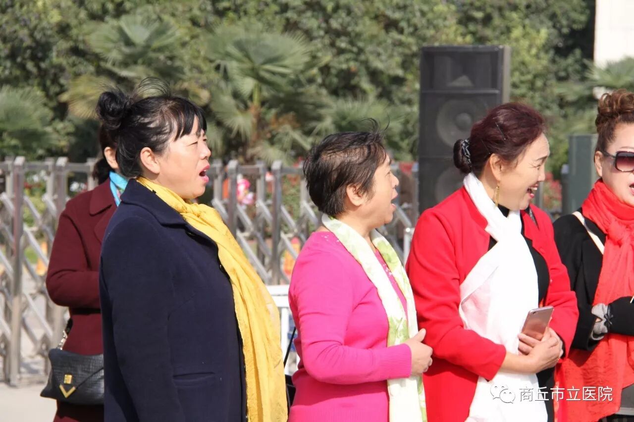 11月9日上午10时,商丘市立医院大门外广场上突然响起《我爱你 中国》旋律,当数十名群众突然出现在商丘市立医院门外广场上,齐声歌唱《我爱你 中国》这耳熟能详的红歌时,现场的群众顿时被惊呆了……