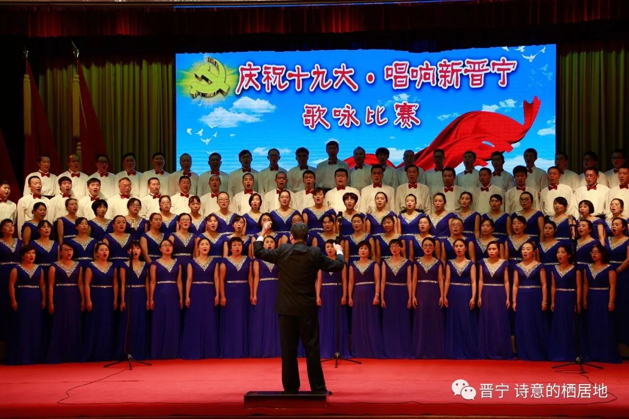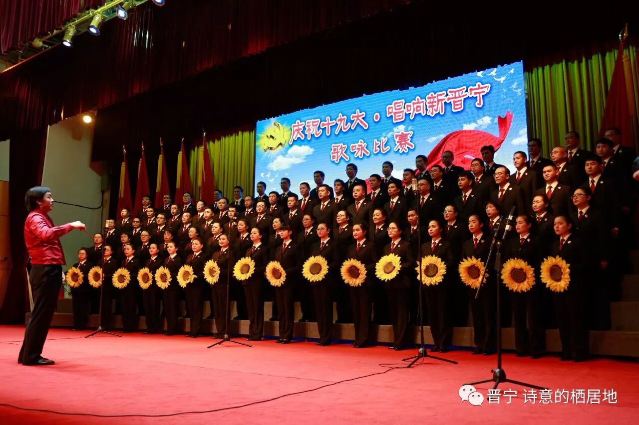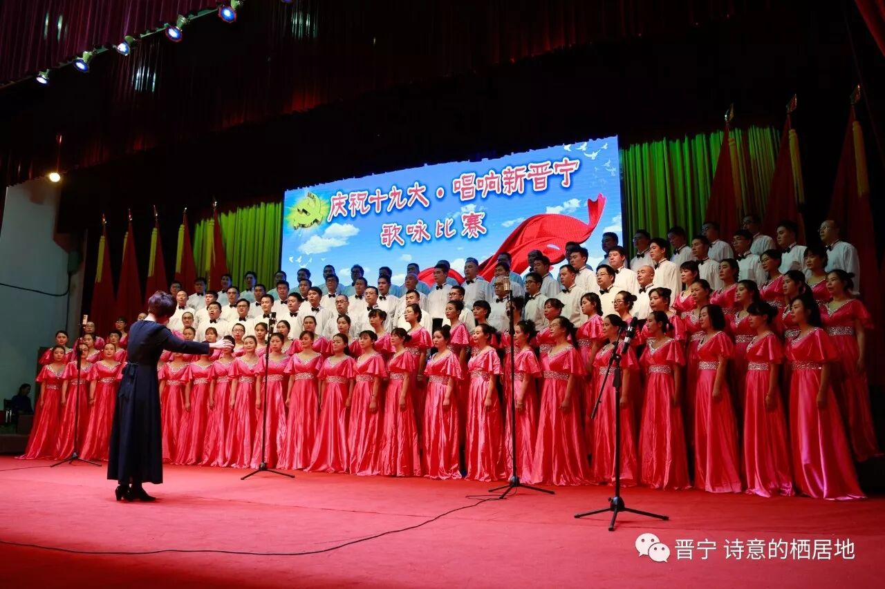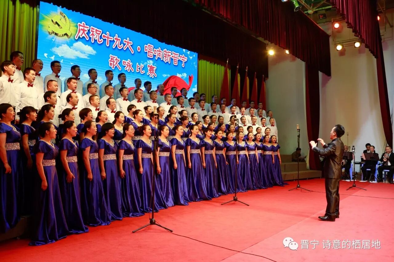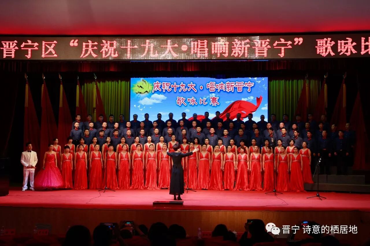 11月8日,晋宁会堂内歌声震耳,激情澎湃。晋宁区2017“庆祝十九大·唱响新晋宁”歌咏大赛在这里举行,全区各单位部门组建的33支合唱队盛装亮相,用嘹亮的歌声饱满的激情歌颂党的十九大,唱响新晋宁。