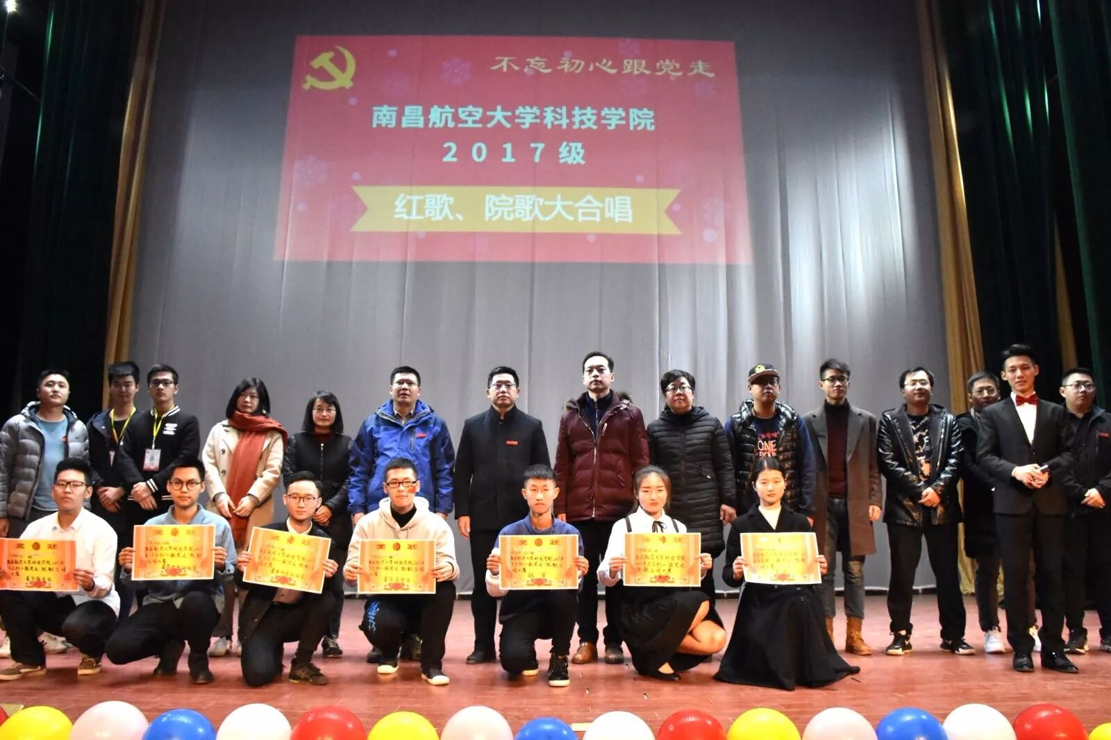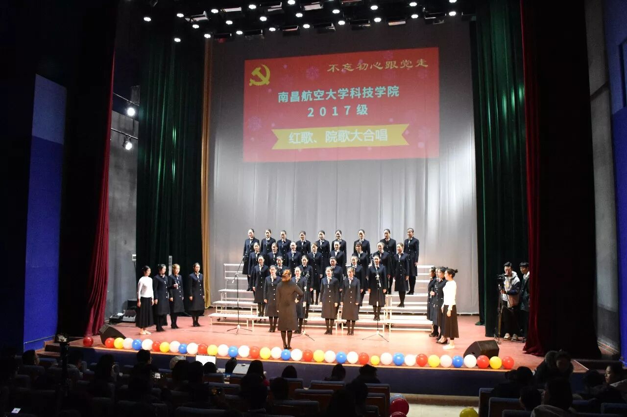 2017年12月26日17:00,南昌航空大学科技学院2017级“不忘初心跟党走”红歌、院歌大合唱决赛在共青校区大学生活动中心小剧场如期举行。科技学院党委书记游永彬,副书记、副院长江天光,团委负责人,各学部团总支书记,17级辅导员老师以及各学生组织主席团代表出席并一同观看了比赛。