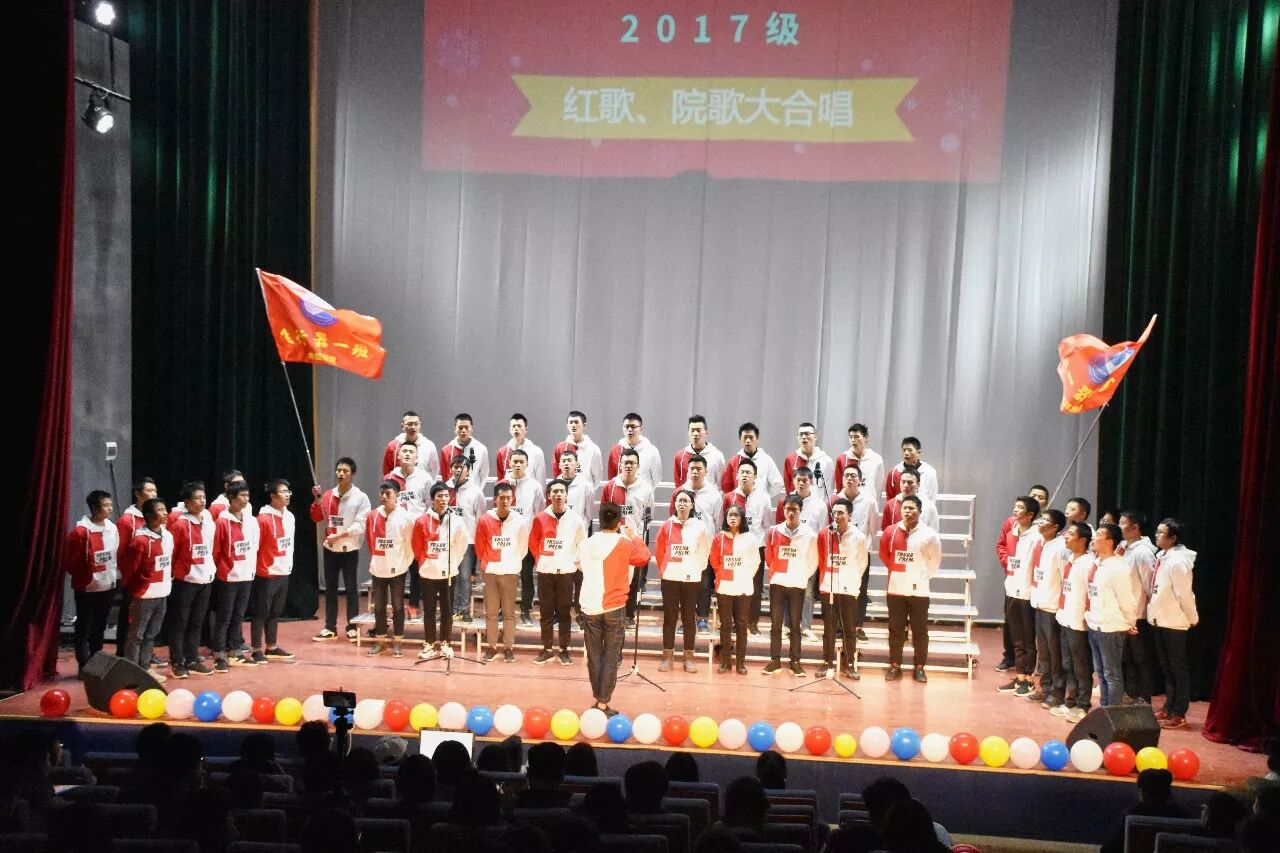 院歌大合唱是我院每年例行的一项特色活动。全院各班级分别经历各学部初赛、半决赛、决赛的厮杀,一路过关斩将,最后进入总决赛。进入总决赛的每个班级分别以自选红歌和院歌两首歌曲进行表演。此次红歌、院歌大合唱以“不忘初心跟党走”为主题,旨在弘扬热爱祖国、热爱母校的精神。