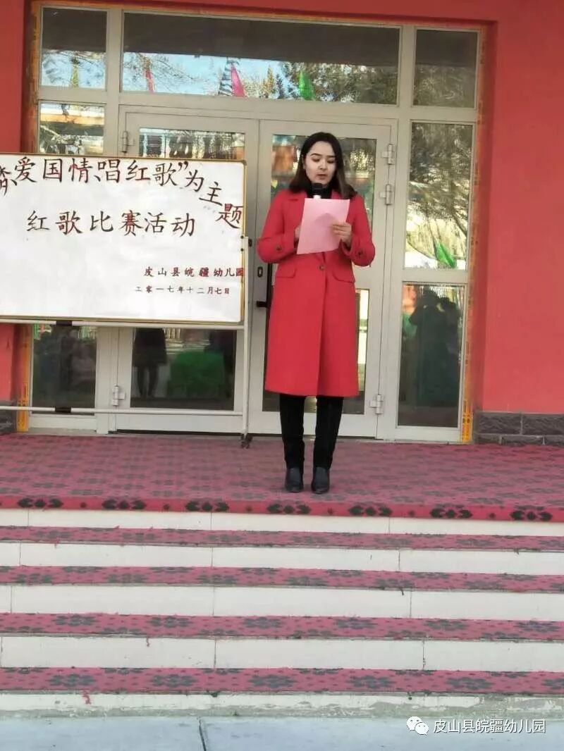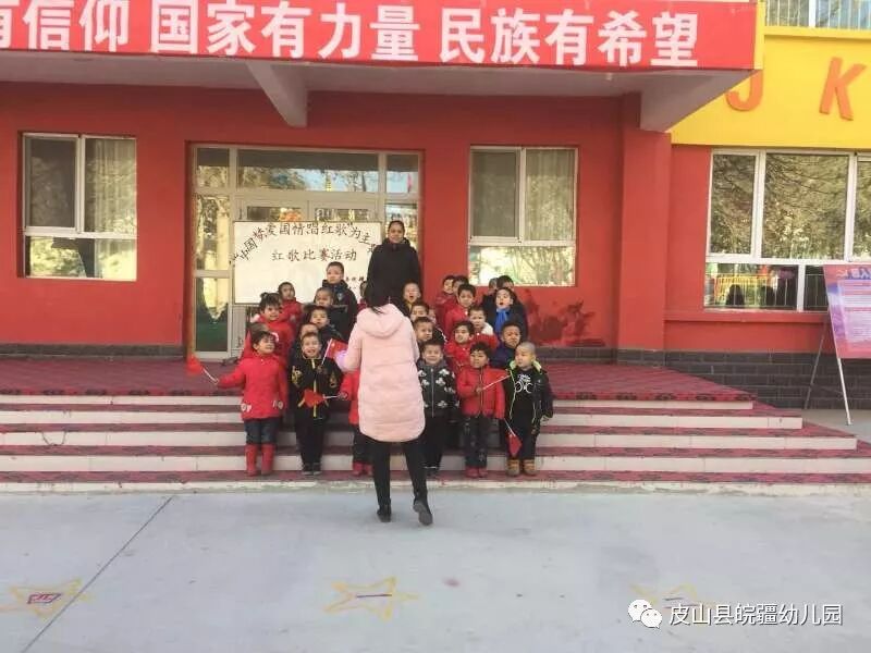 为进一步深化爱国主义教育,弘扬时代主旋律和红色革命精神,培养小朋友们热爱祖国、热爱人民、、热爱中国的高尚情操,激发幼儿爱祖国的热情,在幼儿园里形成“班班有歌声、人人唱红歌”的良好氛围。2017年12月8日,皖疆幼儿园成功举办了以“中国梦、爱国情、唱红歌”为主题的幼儿爱国主义红歌比赛活动,全园有8个班级参加比赛。