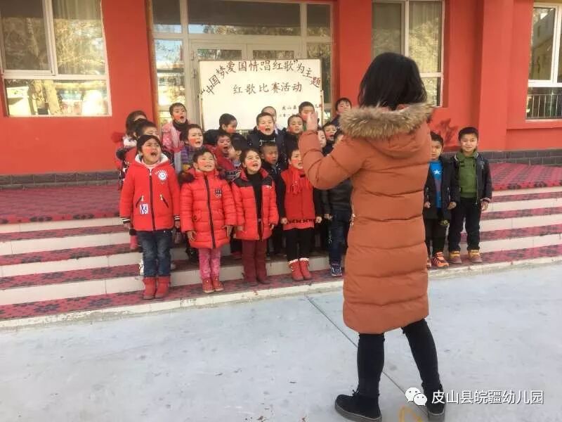 活动现场红歌嘹亮,激情飞扬,全园共8个班级参加。活动中,各个班级着装整齐、秩序井然、精神饱满,小朋友们用激昂嘹亮的歌声,如火的热情表达着对党和祖国的热爱。、《红星闪闪》、《祖国祖国真美丽》、《歌唱祖国》等歌曲演唱形式丰富,比赛现场鼓掌声、欢呼声、喝彩声一浪高过一浪。