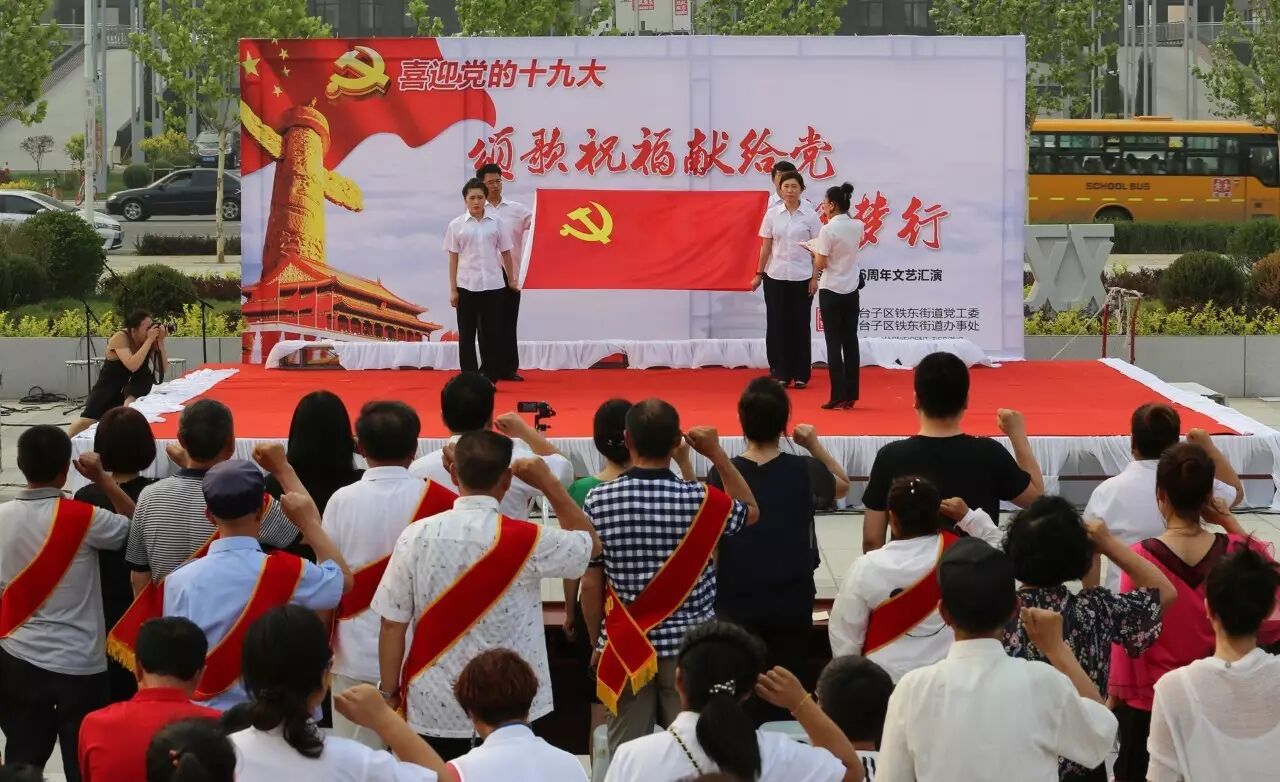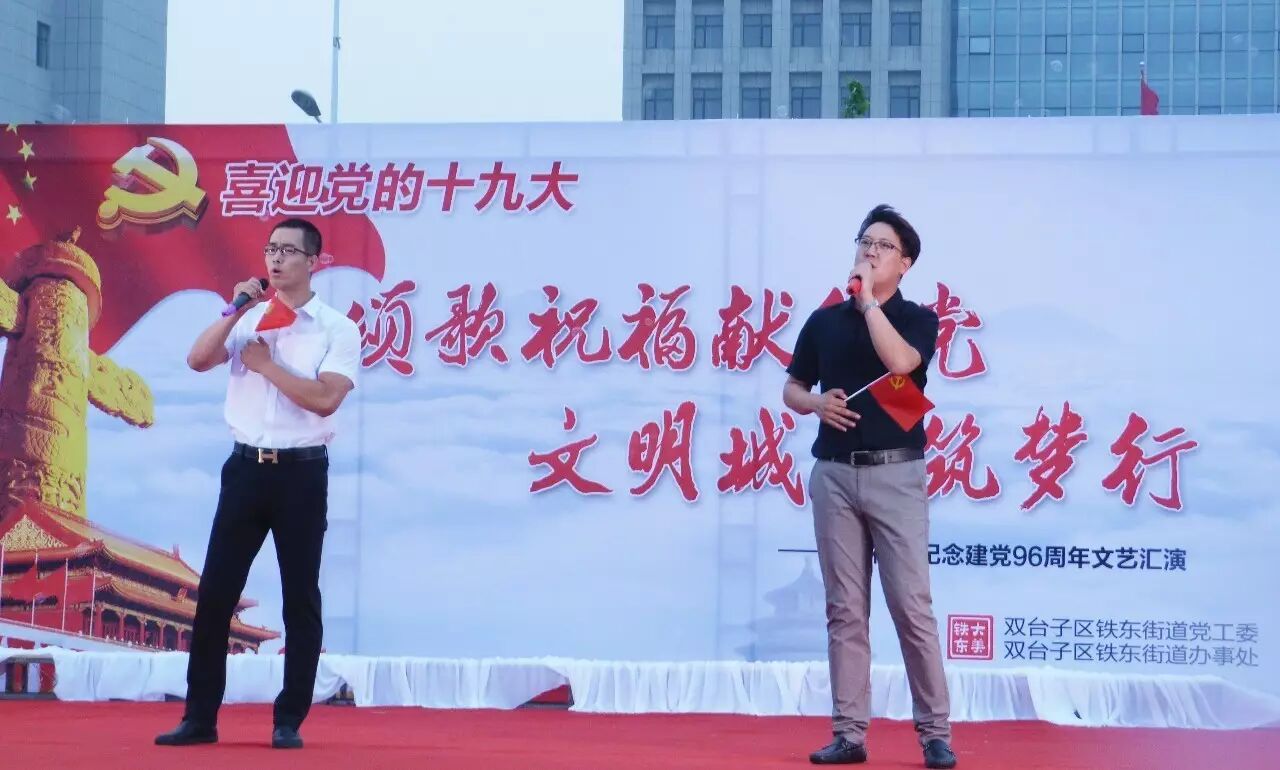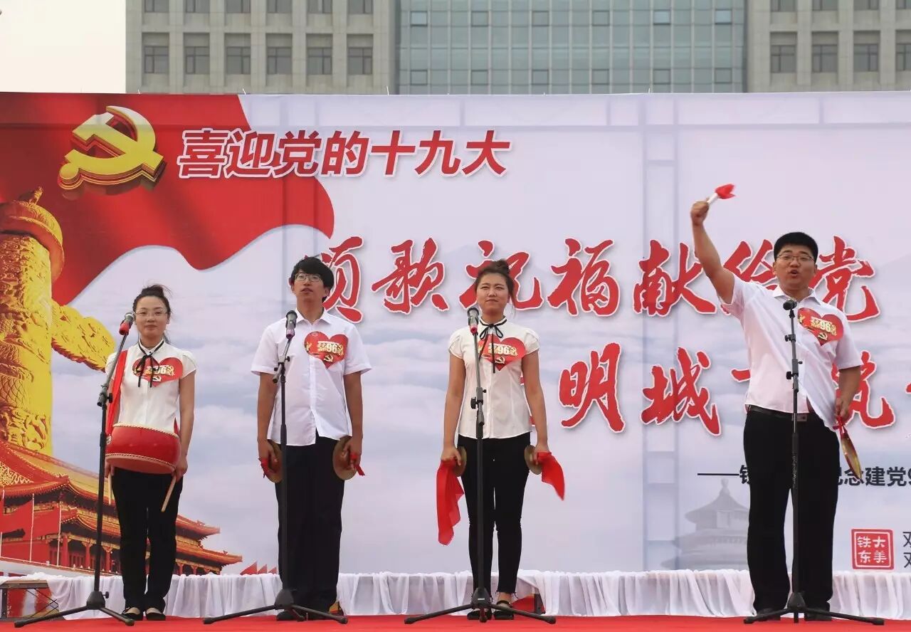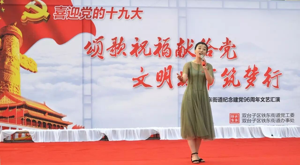 ,喜迎党的十九大召开,进一步推进“两学一做”学习教育常态化、制度化,集聚正能量,筑梦文明城,2017年6月30日,铁东街道在双台子市民活动公园举办了以“颂歌祝福献给党 文明城市筑梦行”为主题的文艺汇演。