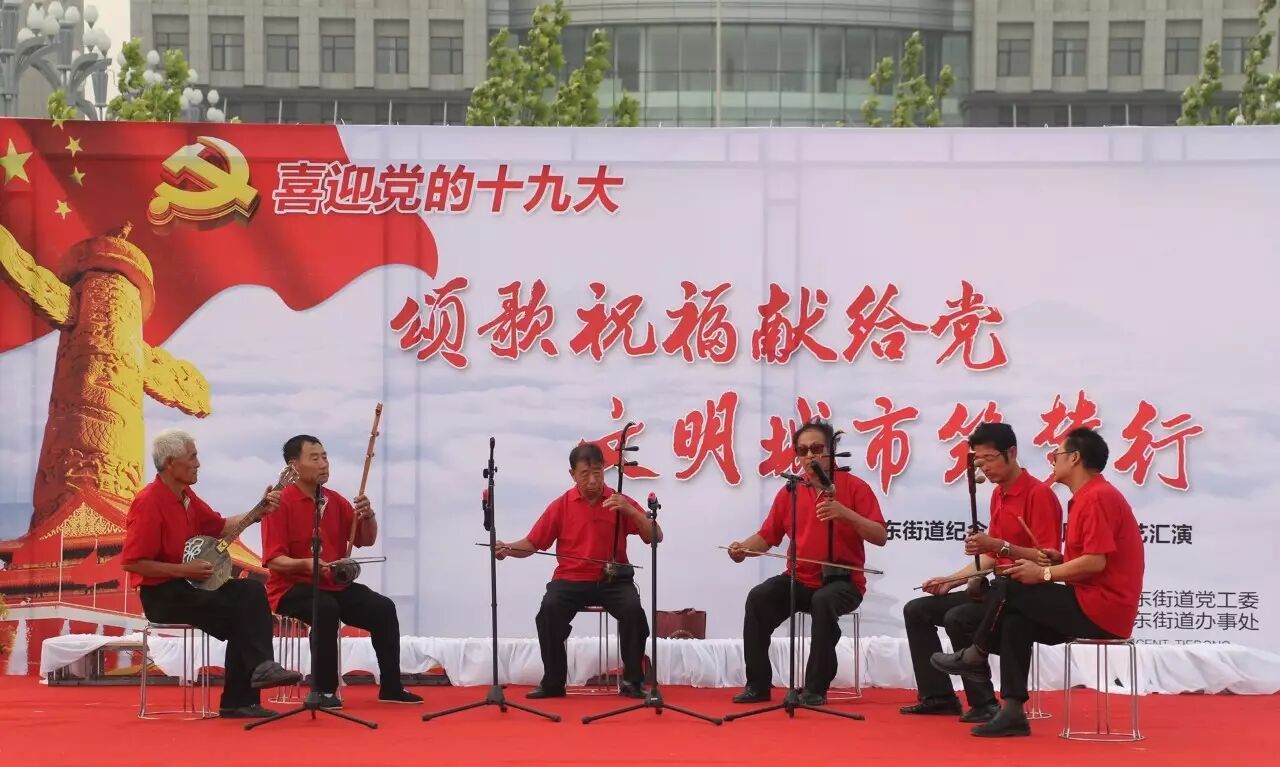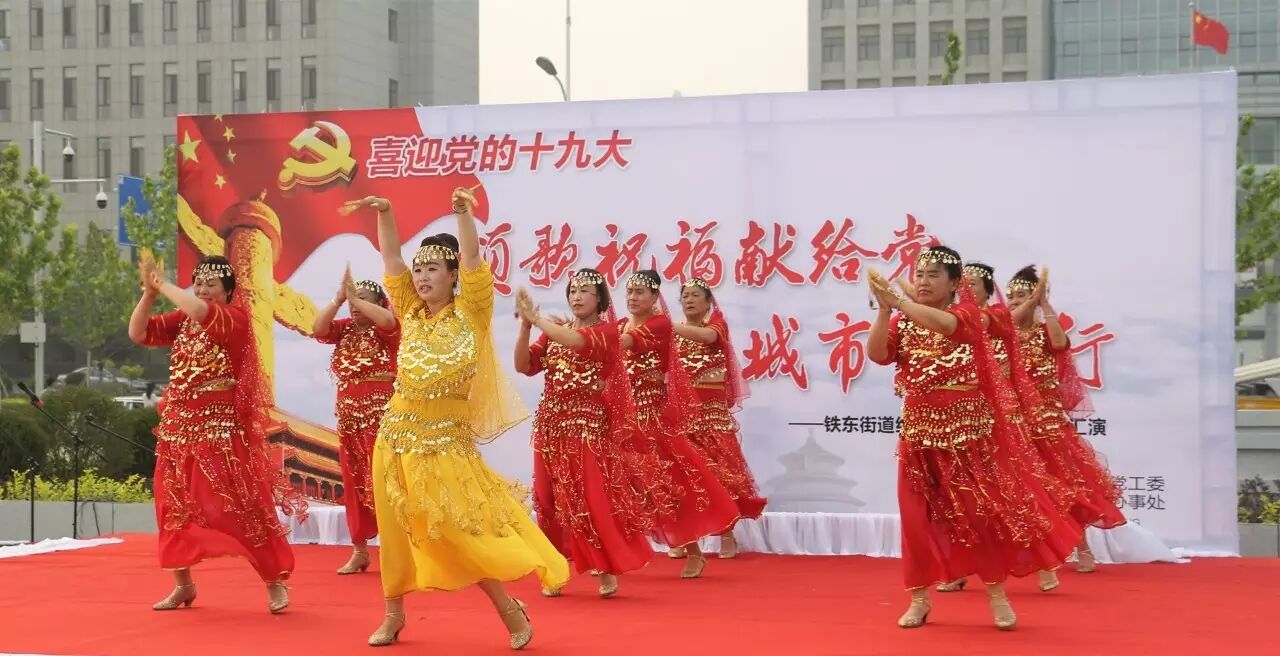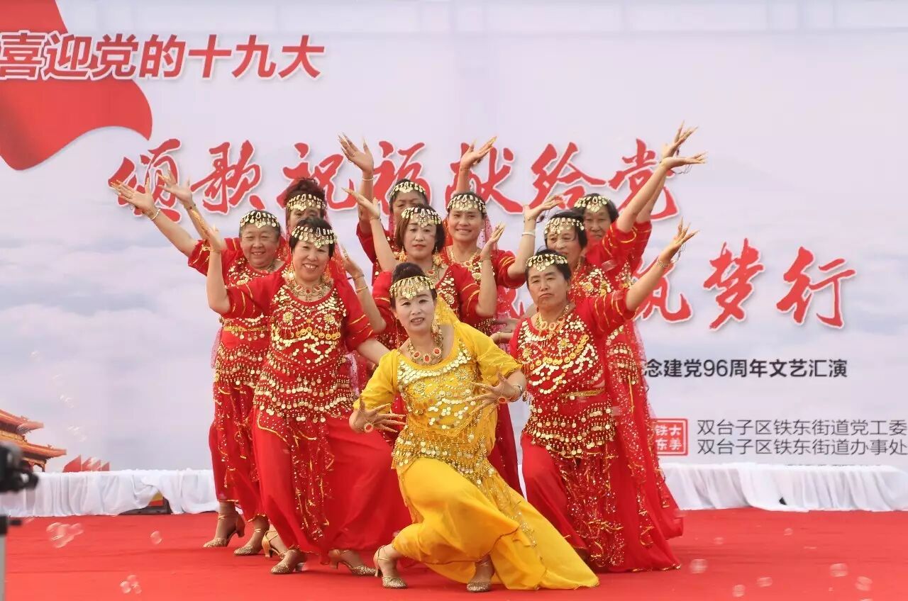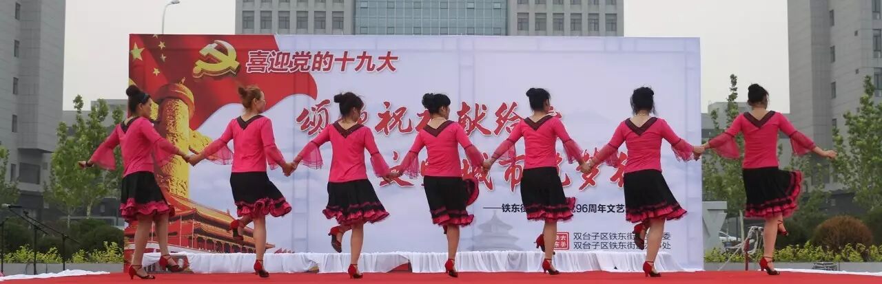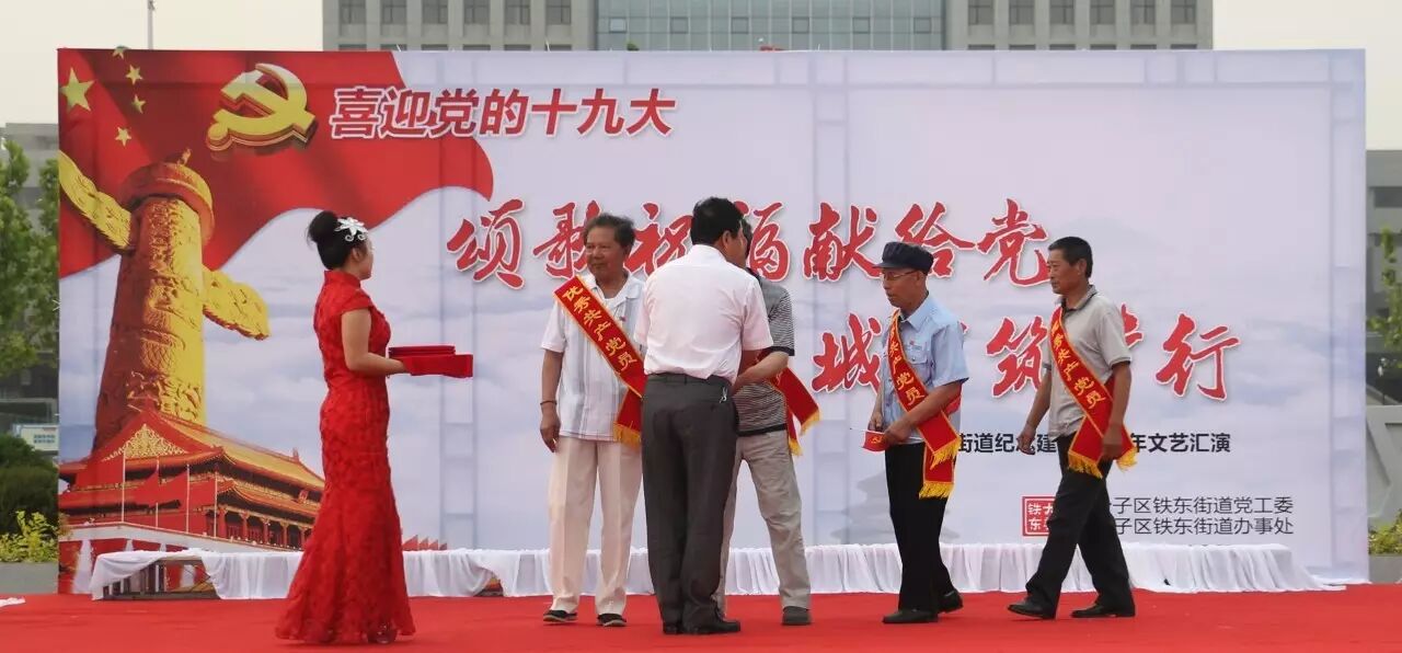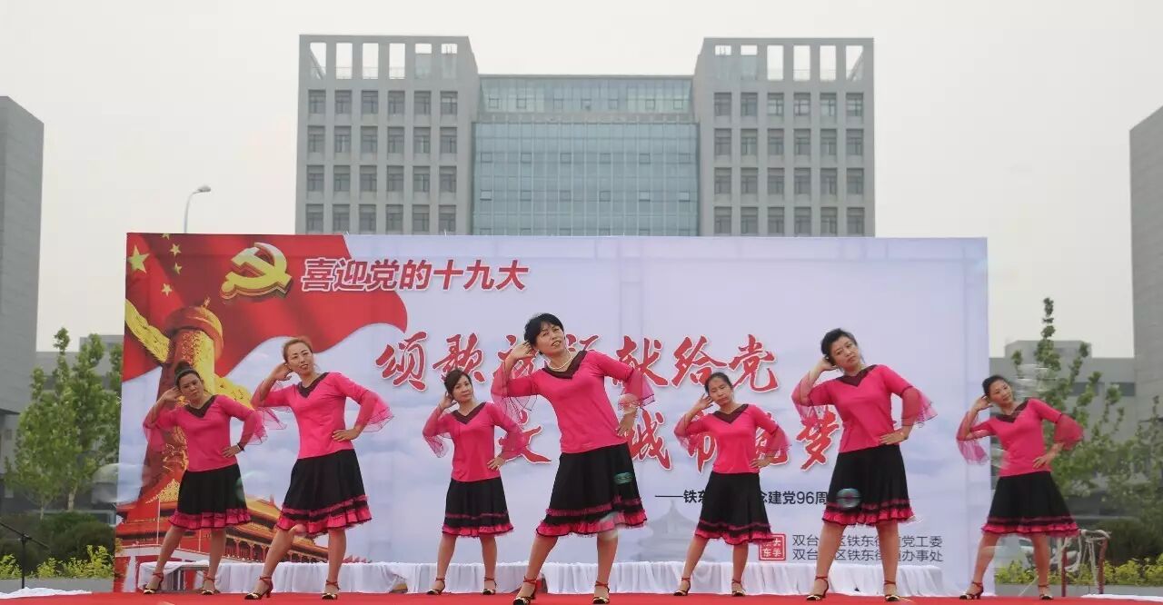 ,喜迎党的十九大召开,进一步推进“两学一做”学习教育常态化、制度化,集聚正能量,筑梦文明城,2017年6月30日,铁东街道在双台子市民活动公园举办了以“颂歌祝福献给党 文明城市筑梦行”为主题的文艺汇演。