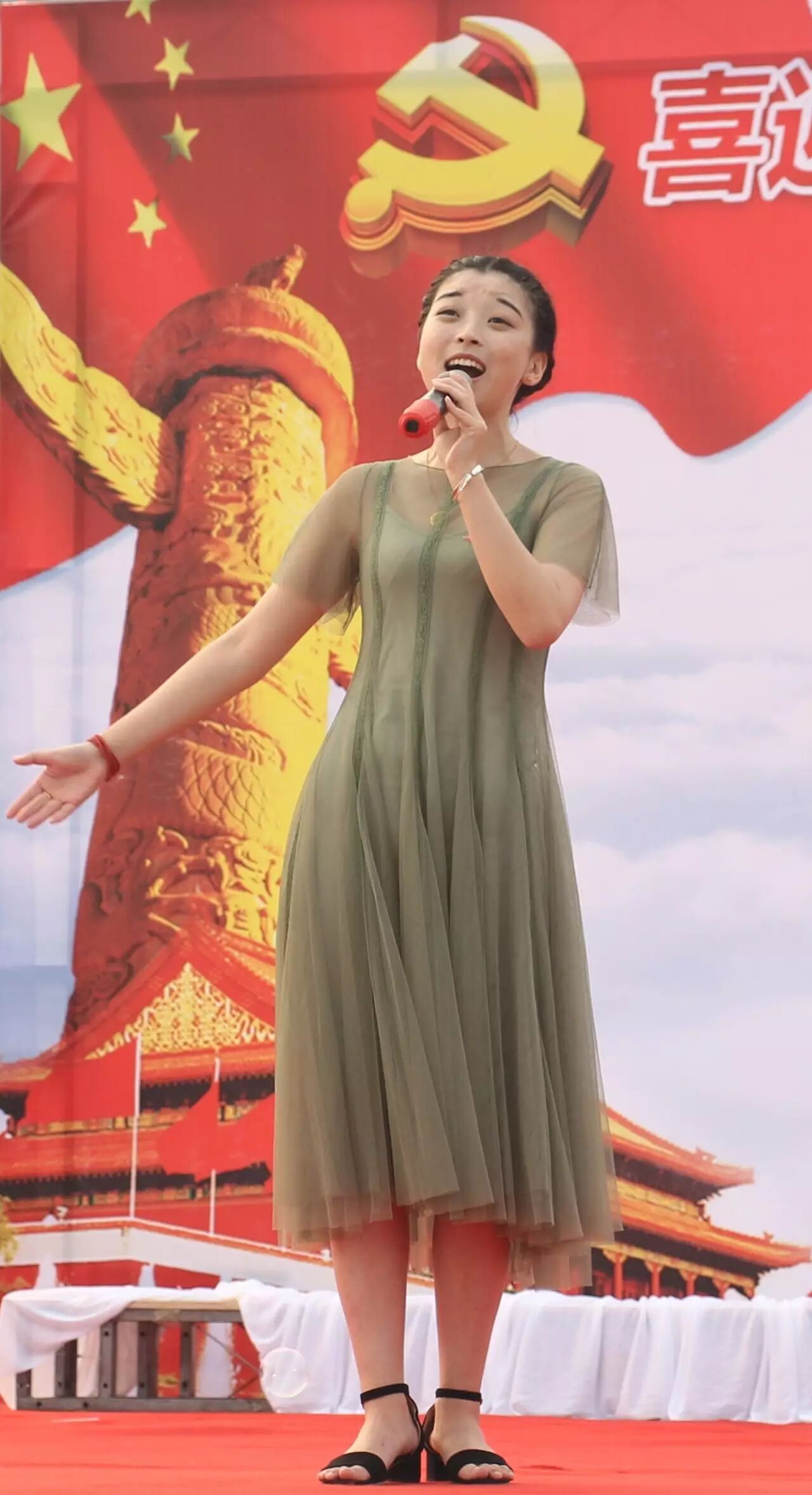 “打天下,坐江山,一心为了老百姓的苦乐酸甜。谋幸福,送温暖,日夜不忘老百姓的康宁团圆。”高家村的李碧璇一曲《江山》惊艳亮相,高亢嘹亮、气势磅礴又声情婉转,传达的力量震撼人心,令现场观众掌声雷动。