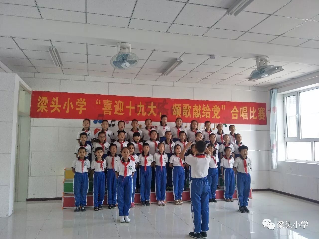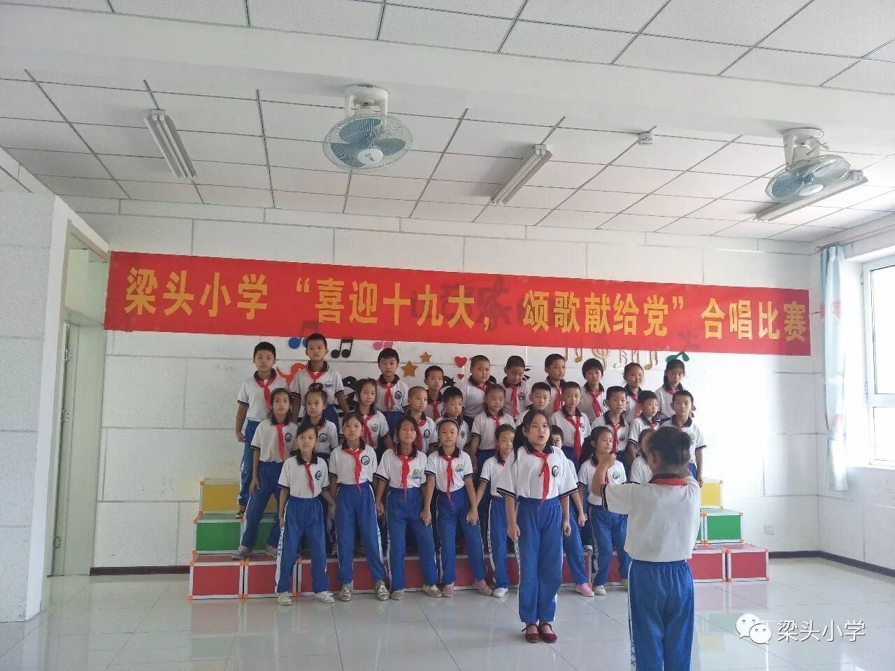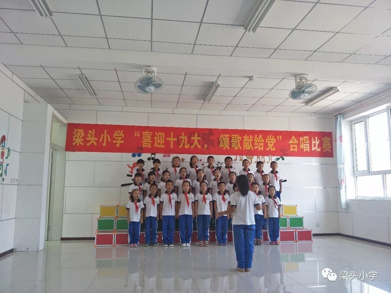 比赛中,各班衣着得体,精神高昂,歌唱形式多样。各班演唱的《梁头小学校歌》、四年级三班的《红星歌》、一年级二班的《我爱北京天安门》……一首首熟悉而经典的歌曲在孩子们精彩的演绎下再放光彩。18个班级尽展其能,独具特色的演出感染了现场的评委老师们,时时爆发出阵阵掌声。铿锵的旋律,嘹亮的歌声,整齐的队列,优美的动作,孩子们在旋律的感受中体味着历史,在歌词的理解中品读着和平的幸福。