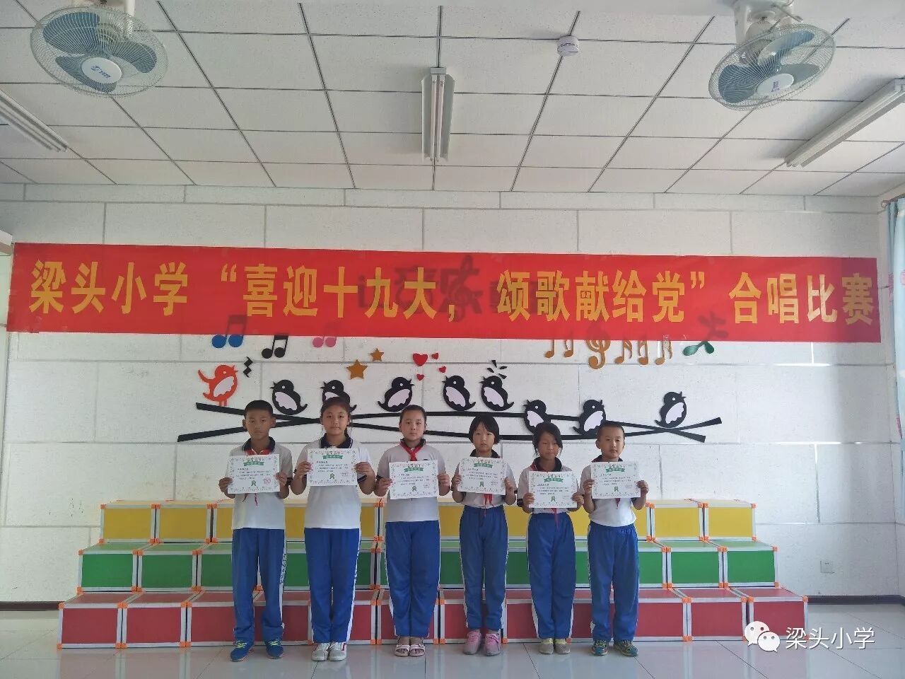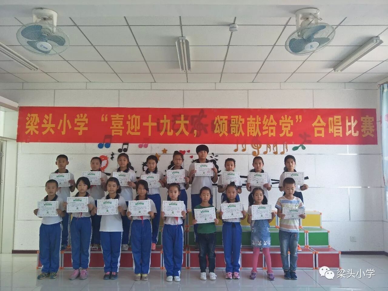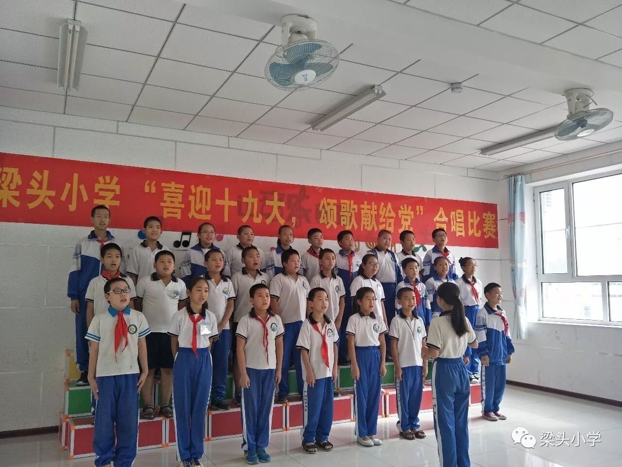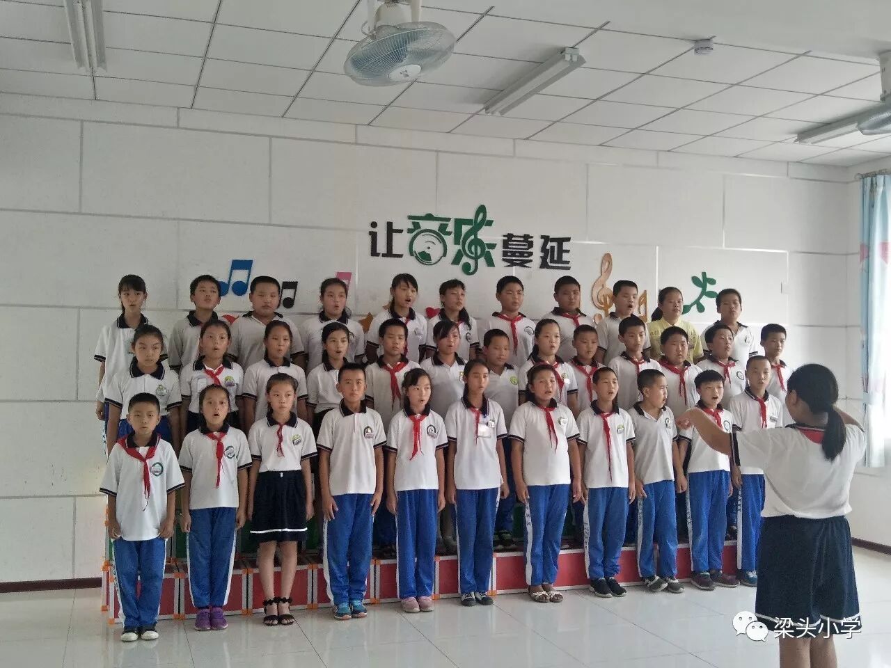 比赛中,各班衣着得体,精神高昂,歌唱形式多样。各班演唱的《梁头小学校歌》、四年级三班的《红星歌》、一年级二班的《我爱北京天安门》……一首首熟悉而经典的歌曲在孩子们精彩的演绎下再放光彩。18个班级尽展其能,独具特色的演出感染了现场的评委老师们,时时爆发出阵阵掌声。铿锵的旋律,嘹亮的歌声,整齐的队列,优美的动作,孩子们在旋律的感受中体味着历史,在歌词的理解中品读着和平的幸福。