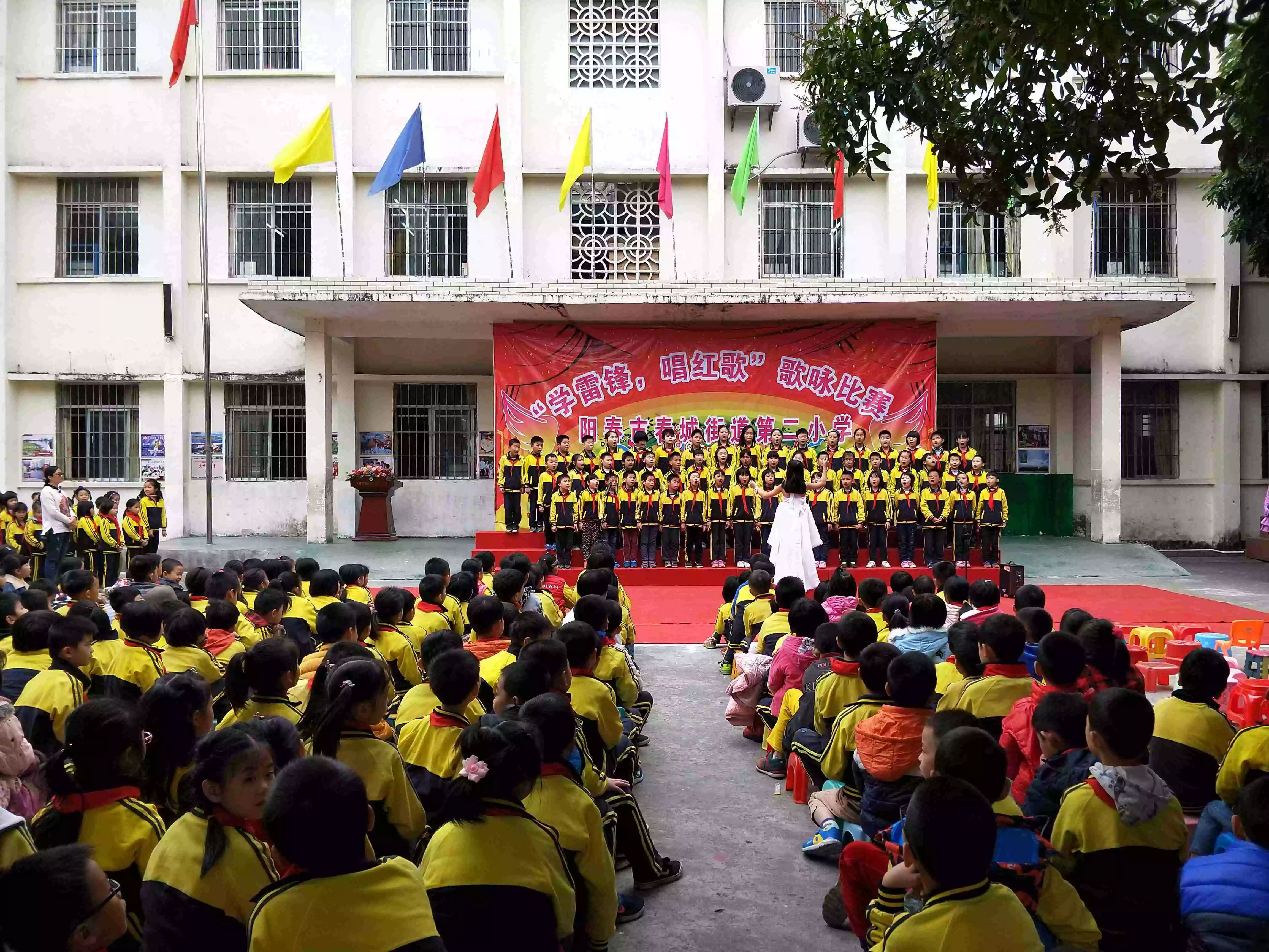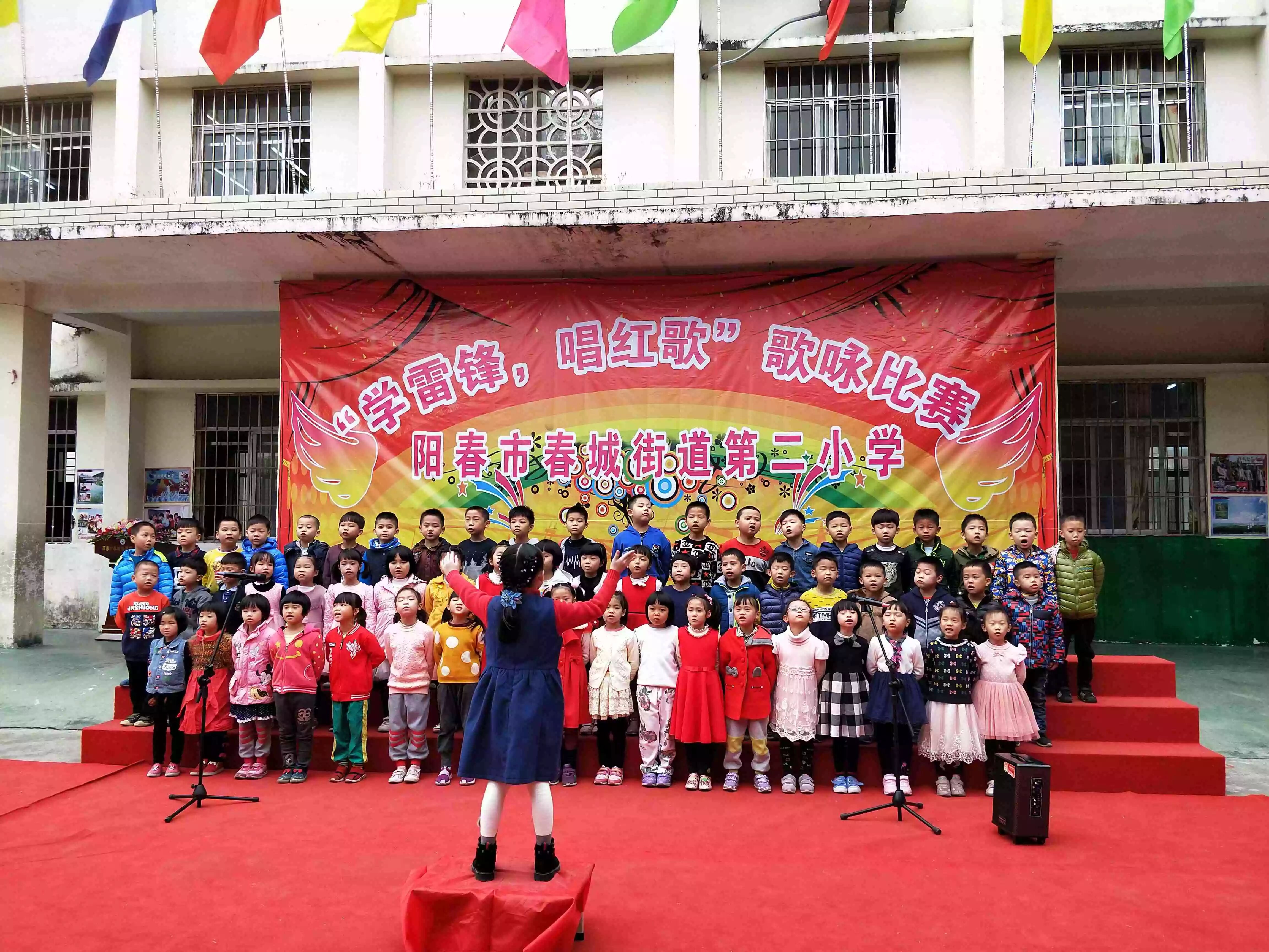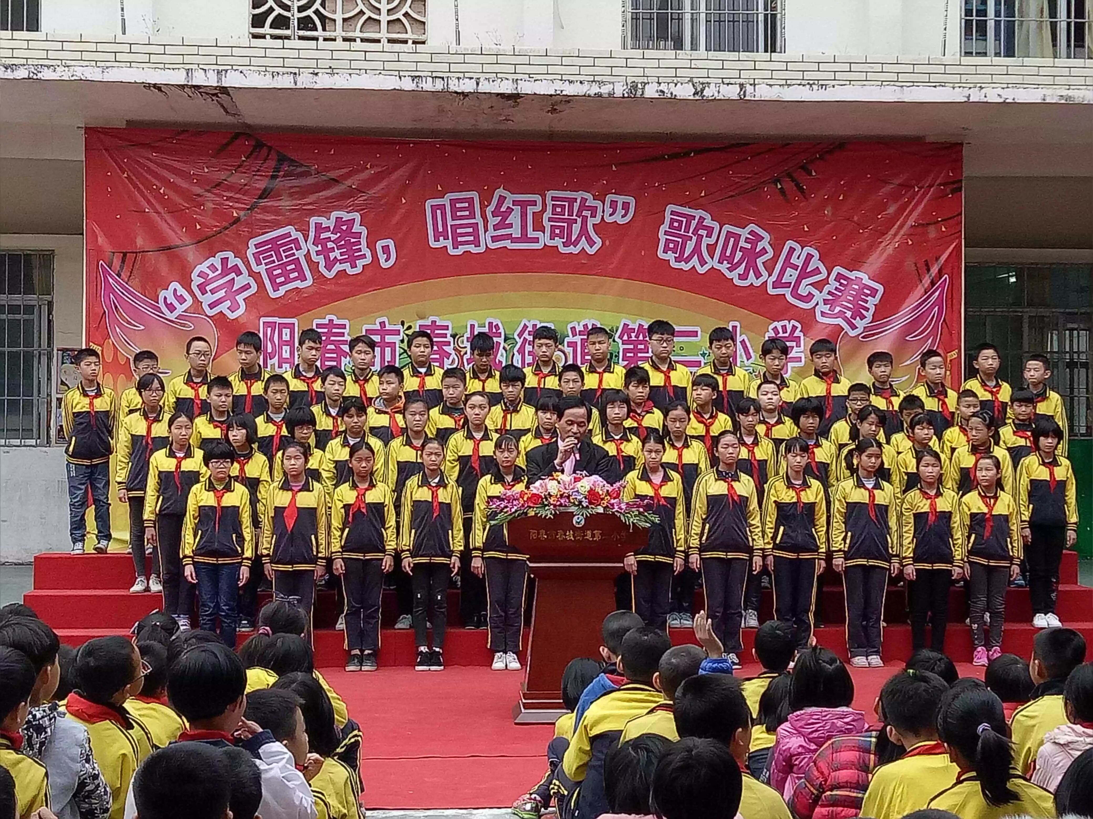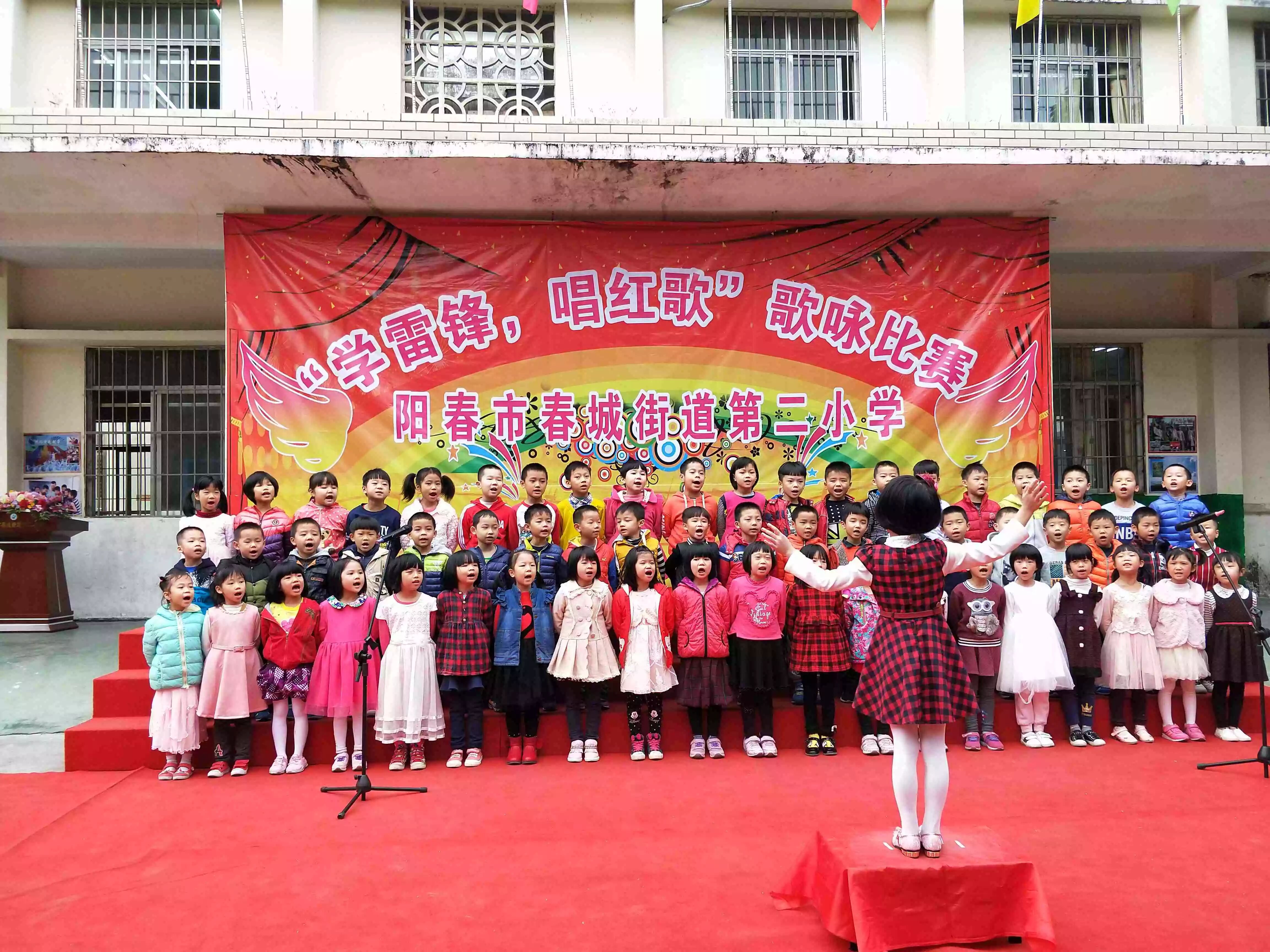 为进一步弘扬“奉献、友爱、互助、,让孩子们,12 月11日,阳春市春城街道第二小学隆重举行,唱红歌”的歌咏比赛,全校共计1800多名师生参加了活动。