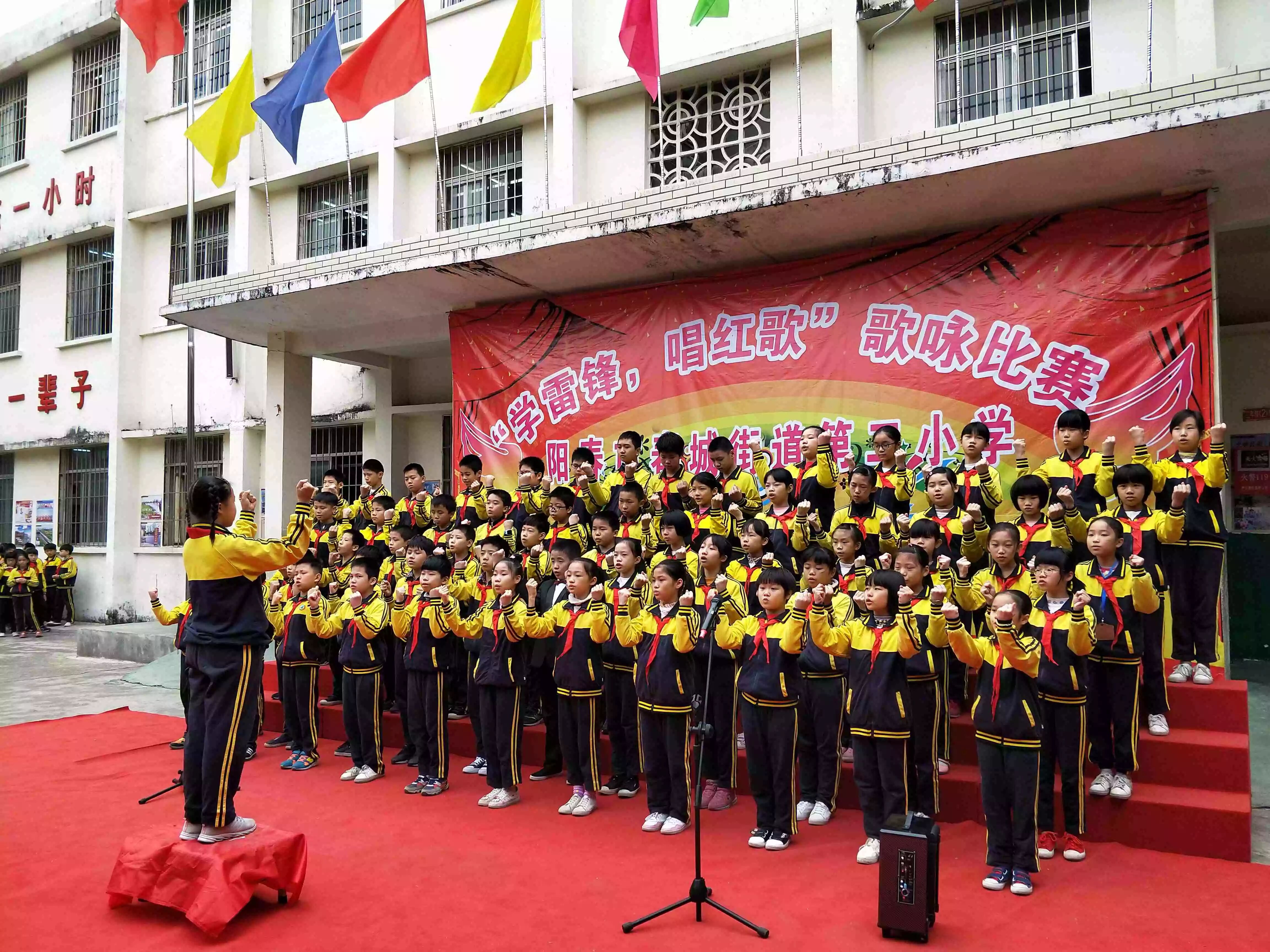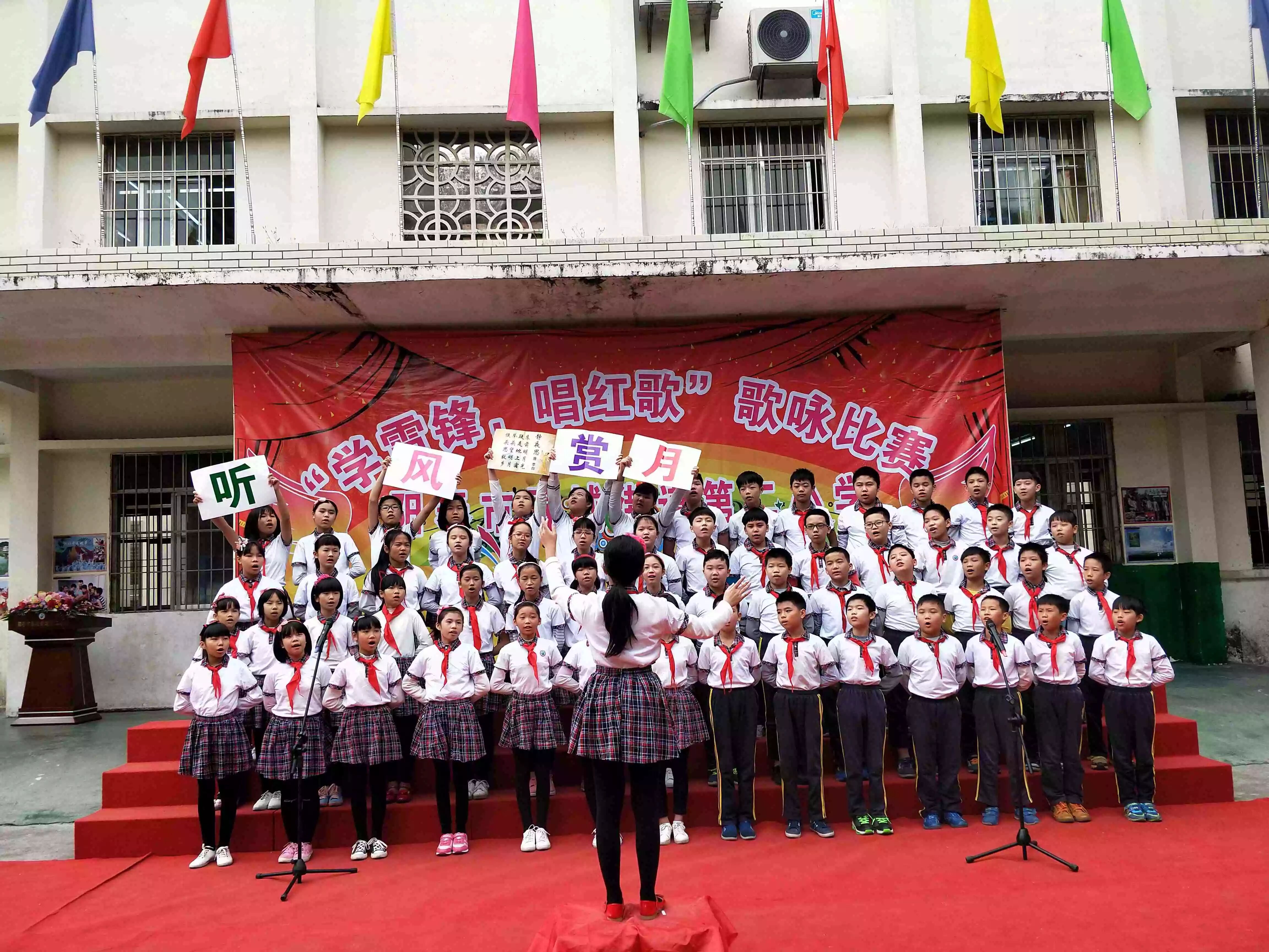 本次唱红歌比赛的成功举办,展现了学生的精神风貌,。演出结束后,学生、乐于助人的精神,从身边的小事做起,争当新时代的文明小学生。
