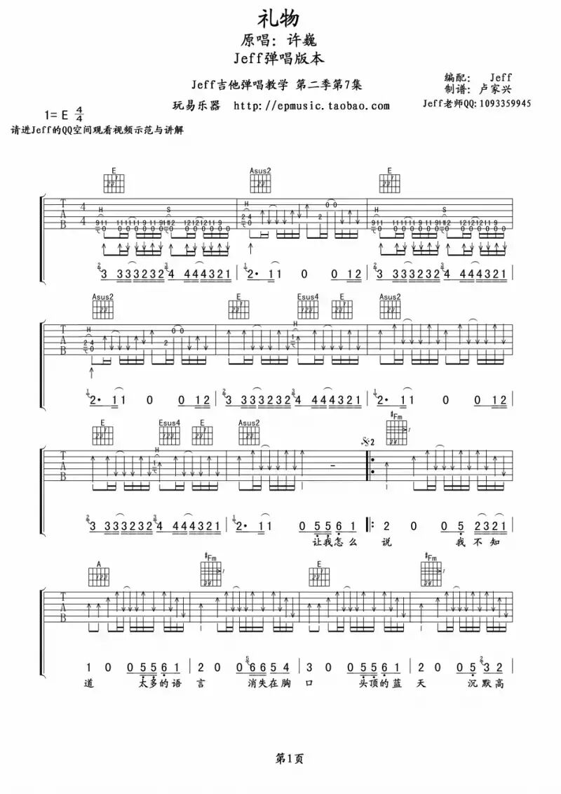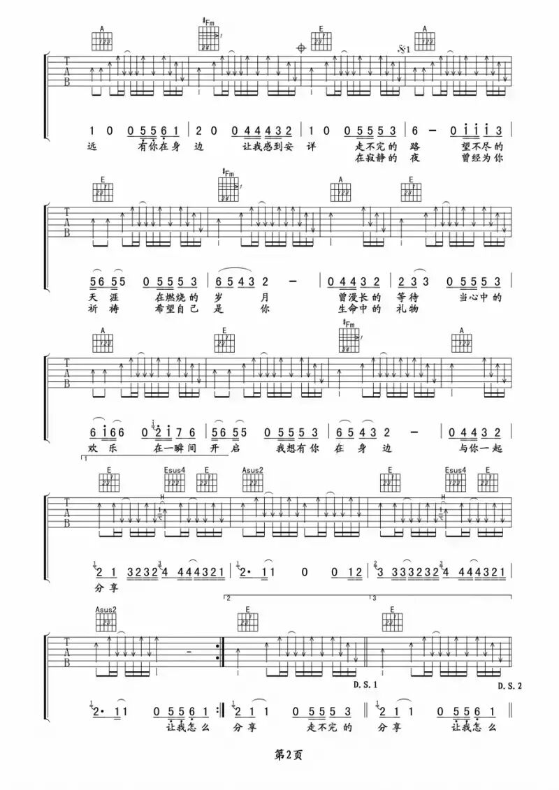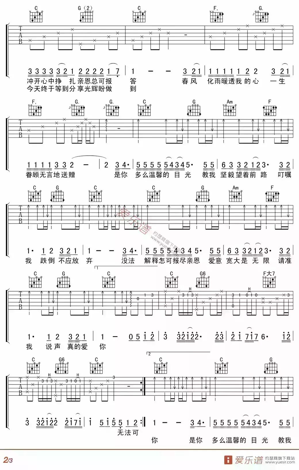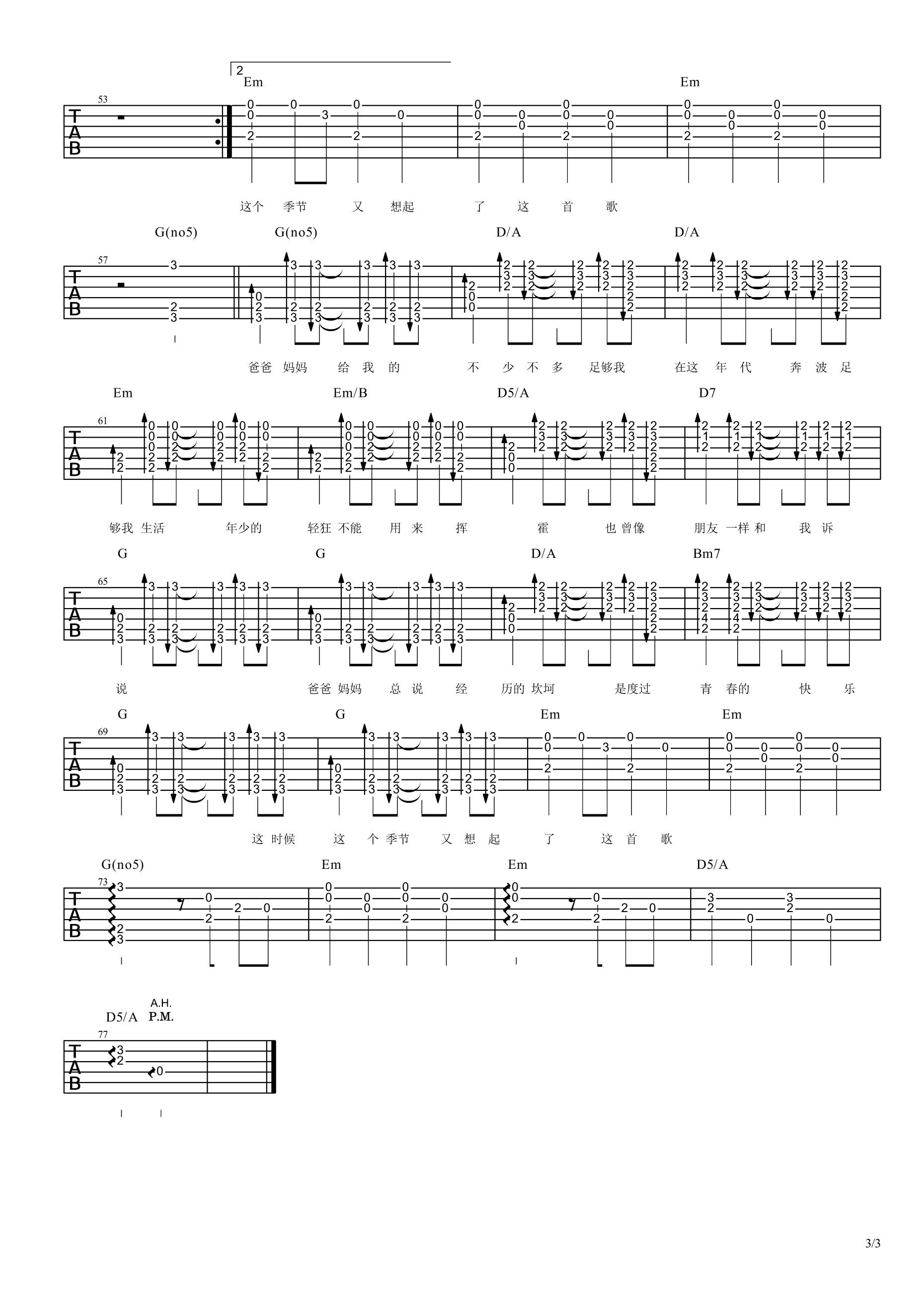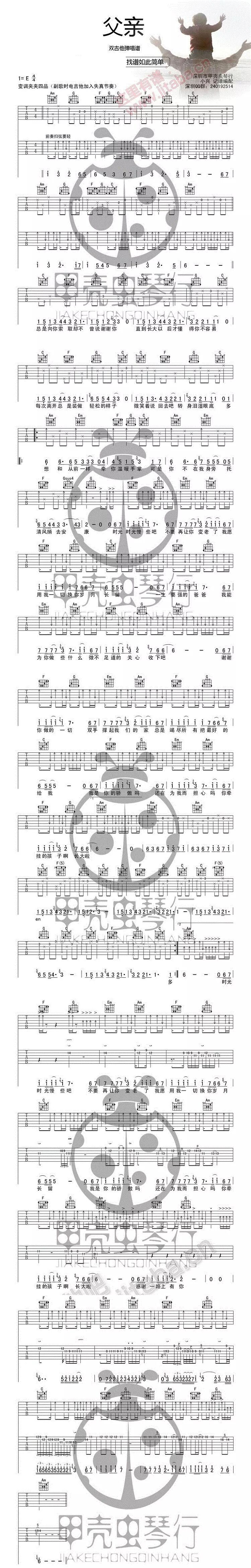 第一首是筷子兄弟的《父亲》,不用多说什么了!筷子兄弟倾力奉献贺岁短片《父亲》中的主打歌曲,带给所有人感动。原曲为E调,本谱变调夹夹第4品。