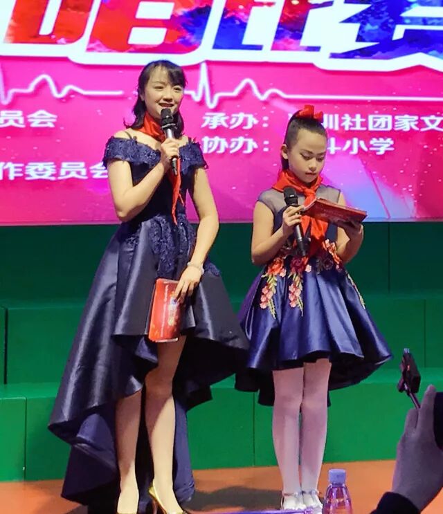 大会主持人:翠外黄稳老师和五(7)中队谢宛澄