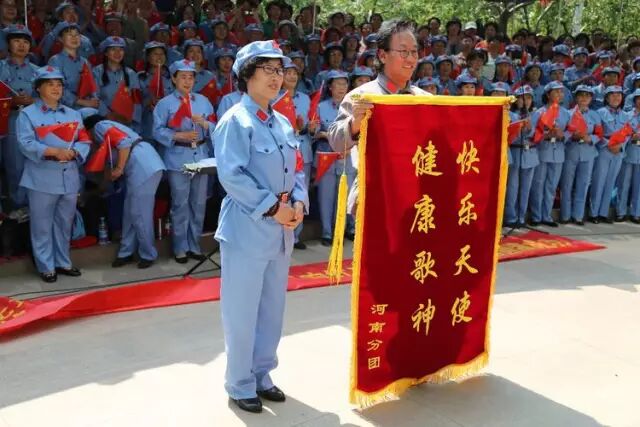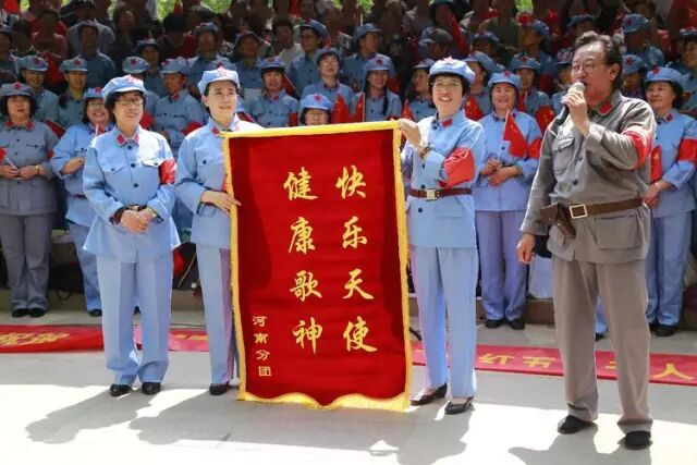 河南分团团长靳根英专程赶到北京现场,表达了歌友们共同的心愿,为李团长送来了锦旗,表达对团长的敬爱之情。