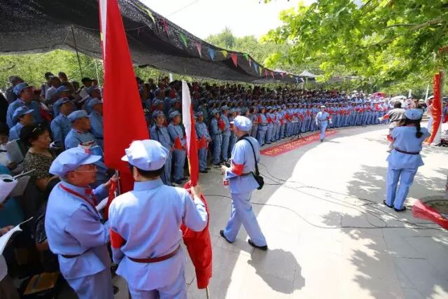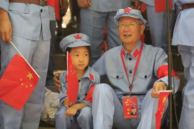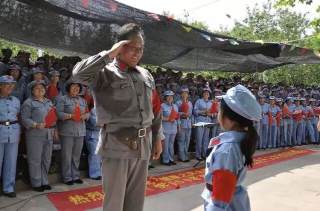 瞧,队伍中来了一个小红军,还向团长敬了一个礼。小战士,我们革命后继有人哦!