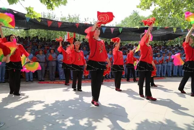 快乐50老年大学红菲舞蹈队献上舞蹈《欢聚一堂》的表演,她们接到表演任务时间较晚,却能克服种种困难,按时参加今天的演出。虽然时间短,任务重,场地环境有限,但她们依然圆满的完成了任务,并且获得了李团长的点名表扬,你们是最棒的!