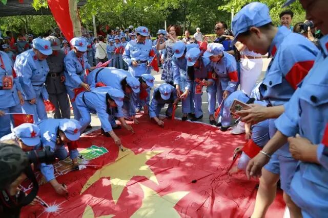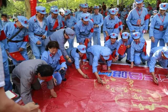 签字过后是大合影环节,几百面大小红旗迎风招展,横幅、条幅主题彰显,一眼望去,红色满满!看大家兴高采烈的样子,这是被载入健康之声发展历史中意义非凡的一天!据悉,千人大合唱北京主要场,以及山西、河南分会场合影,三地总共集聚歌友超过千人。