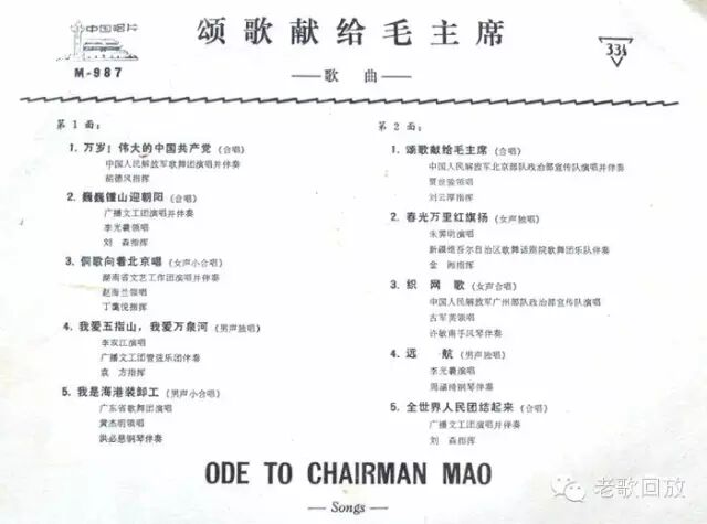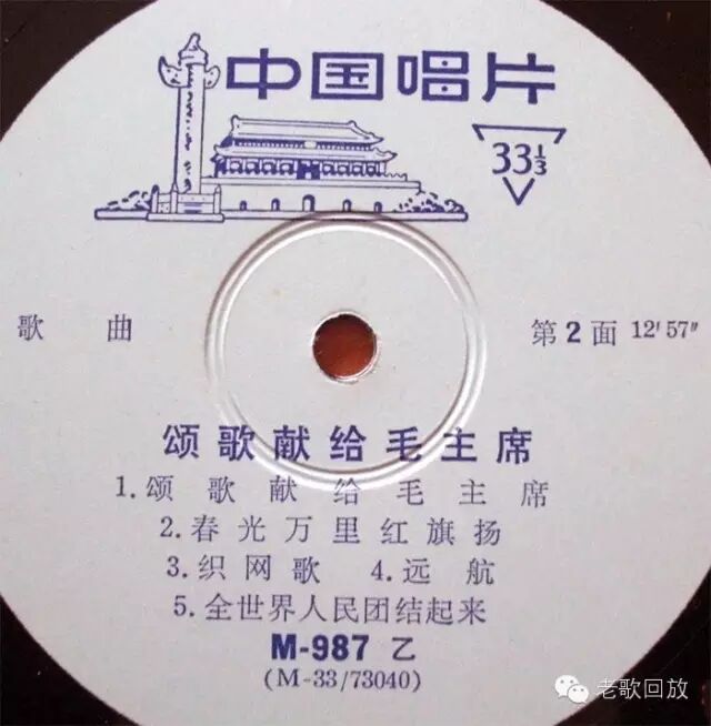 录音翻录自黑胶唱片(唱片号M-987)。颂歌献给,作词:瞿琮,作曲:郑秋枫。原本是女高音独唱歌曲,这款合唱版是北京军区改编的。