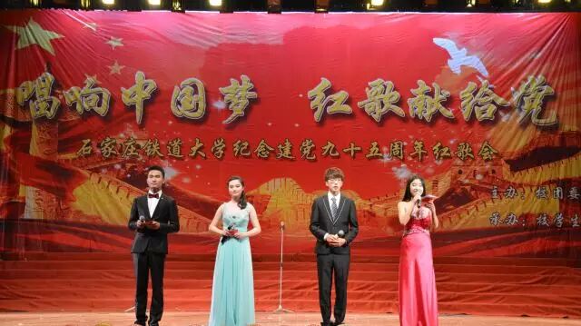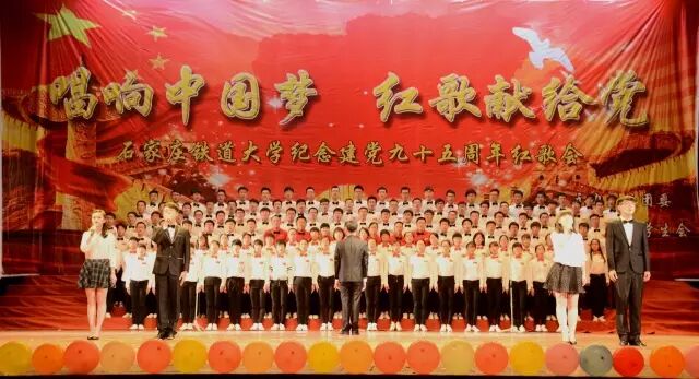 5月11日晚,石家庄铁道大学“唱响中国梦,红歌献给党”纪念建党95周年红歌会暨五四表彰大会在大礼堂成功举办。石家庄铁道大学校党委常委张建民教授、刘金喜教授,关工委常务副主任李庚全、校书记林治华、校团委书记陈明长、组织部副部长宋万民、宣传部副部长赵艳斌、党政办副主任宋强、学生处副处长杨博出席活动并担任评委。本次活动得到了各院系的高度重视,土木学院副院长孟丽军、电气学院副院长张学龙、信息学院副院长温杰、多位团委书记、辅导员及全校十二个院系共1300余名青年学生参加演出。