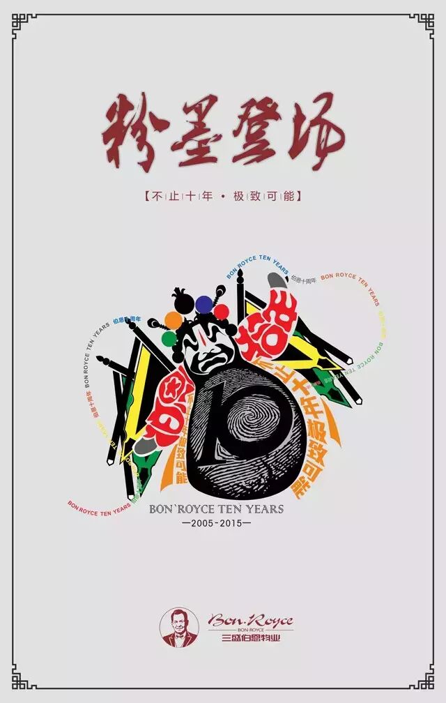 中国国粹“京剧”卡通形象化与“伯恩十年”元素结合,意在融合中国独特文化内涵和创新文化的企业精神,突出伯恩团队“不止十年 极致可能”的创造、进取的精神,同时具象了伯恩春晚节目古侠风表演形式,相得益彰。