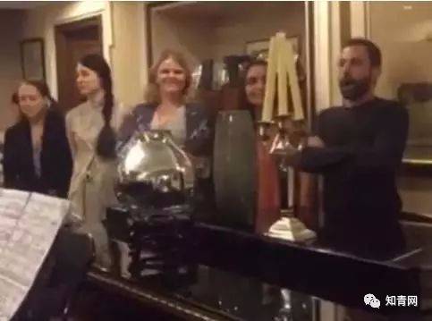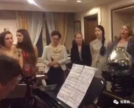 洋姑娘洋小伙跟着钢琴唱得一脸认真,非常投入。