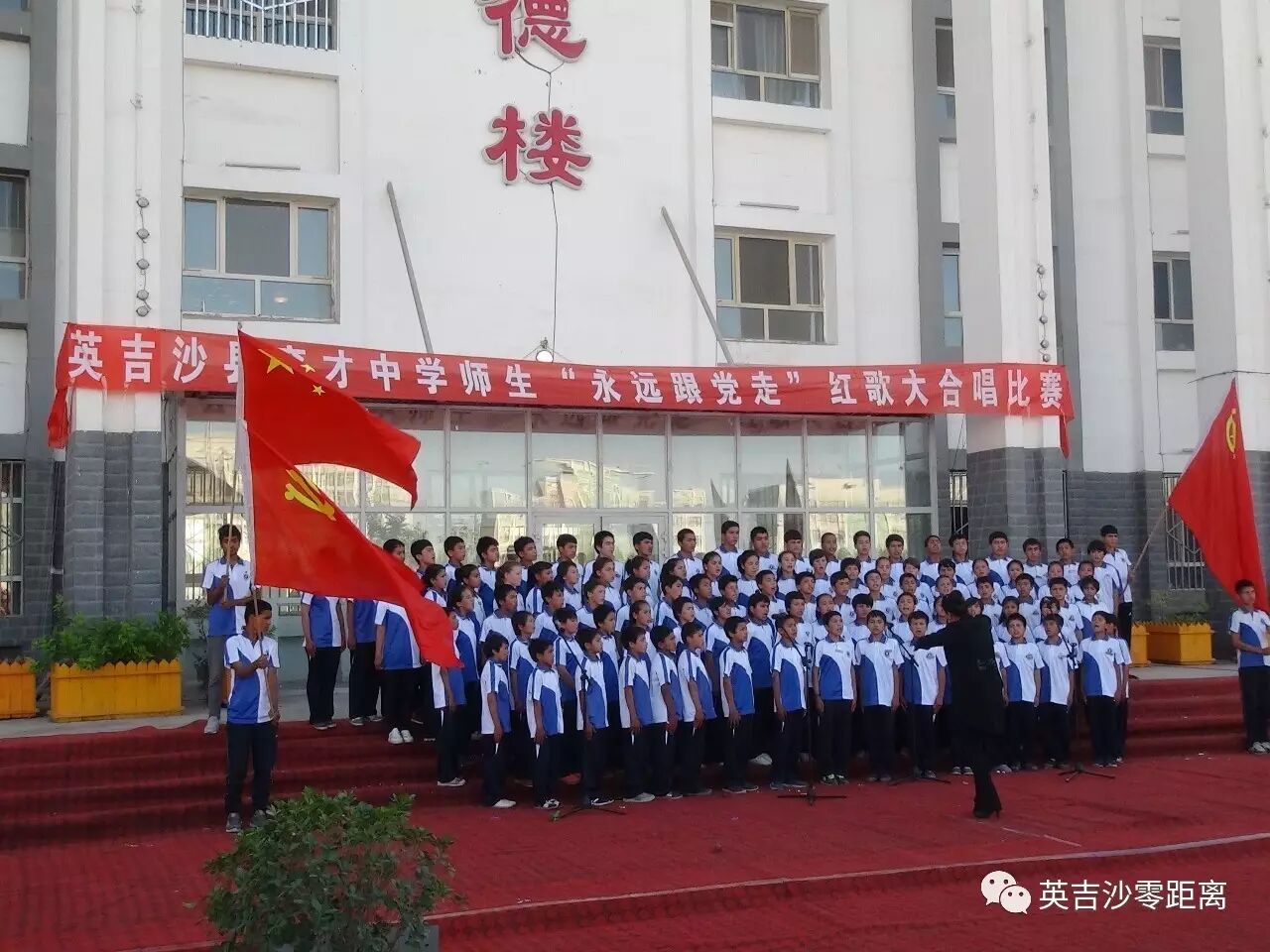 》《歌唱祖国》《唱支山歌给党听》等一首首脍炙人口的红歌充分展示了广大师生积极向上、拼搏进取的良好精神面貌,进一步激发了师生爱党爱国情怀和共同建设美丽英吉沙的强烈愿望。