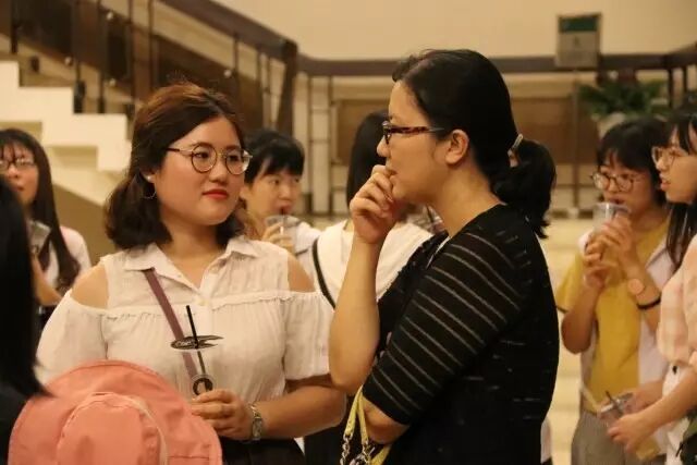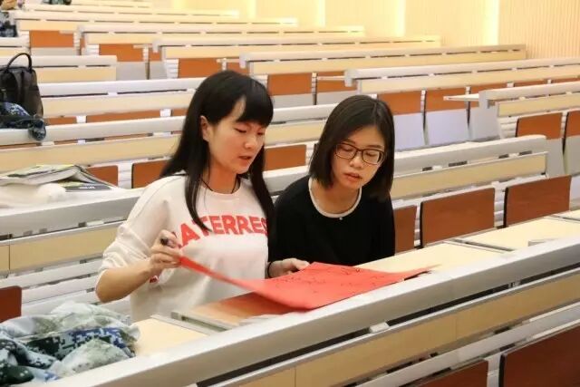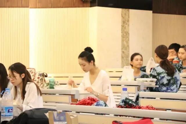 讲学厅早已亮着暖黄色的灯光,空调吹着恰到好处的清凉,心灵手巧的师姐们制作了一个个可爱又吸睛的“粉丝牌”,几位天使热情地招呼着为我们细心装扮,还有那一份份加了鸡腿的晚餐。