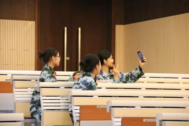 即便是白天紧张的军训间隙,我们也自觉地肩并着肩,不怕单调与重复,只争朝夕。