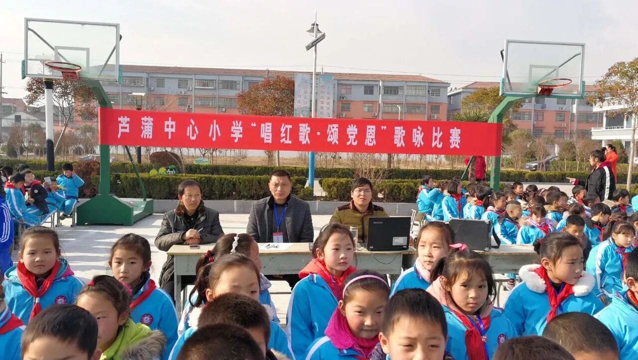 “起来,12月22日,芦蒲中心小学校园内热情四溢,铿锵有力的爱国歌声回响在校园上空,这里正如火如荼地举行芦蒲中心小学习贯彻“十九大”精神,“唱红歌 颂党恩”歌咏比赛。