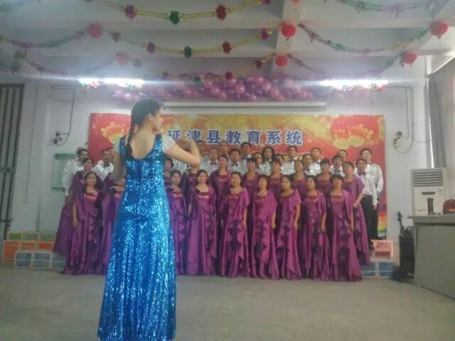 延津一中教师合唱代表队的教师们一个个精神饱满,热情似火,他们用自己的歌声演绎着青春的动听旋律,唱出了对党的忠诚,对做过的热爱,对教育事业的孜孜以求,对和平美好幸福和谐的生活的无比珍惜……