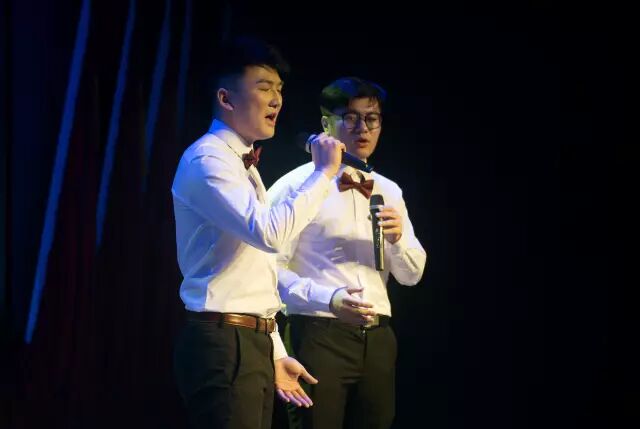 — ▲ 团队二的选手是2017年新入职的分行“小鲜肉”刘戈和谢明隽,年轻的他们演唱《夜空中最亮的星》,今天他们就是最亮的星! —