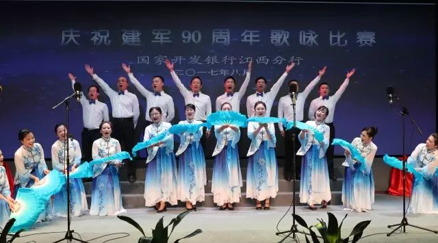 ,,江西分行举办“庆祝建军90周年歌咏比赛”,唱响红色经典,传承“八一”精神;坚定理想信念,凝聚团队合力;培养良好作风,团结奋发向上。