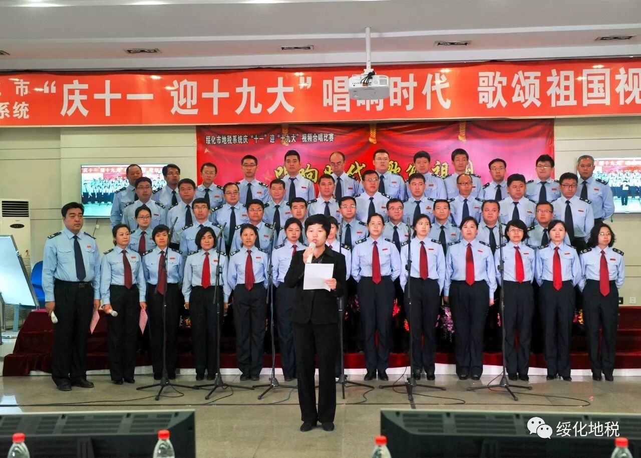 金秋时节,丹桂飘香。为庆祝建国68周年,喜迎十九大胜利召开,展现全市地税系统作风整顿新成效,9月29日上午,绥化市地税局举办以“庆十一迎十九大”唱响时代歌颂祖国为主题的合唱比赛。