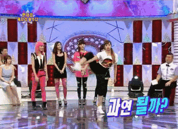 早期在韩国发展的时候,就是团内的“杂耍担当”,经常在节目中展示自己的柔韧性。