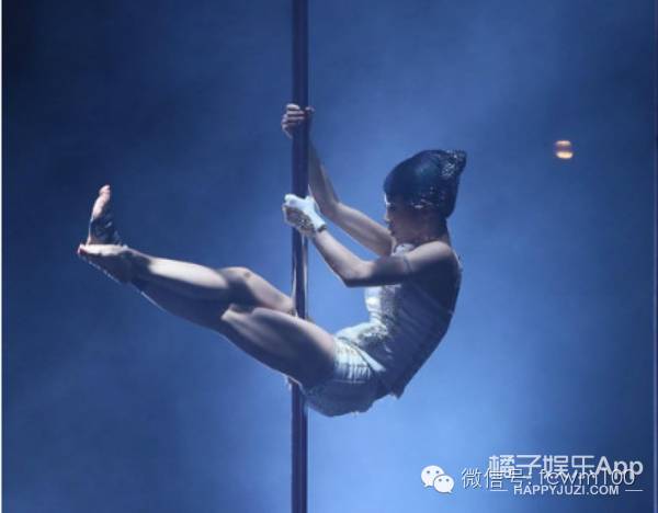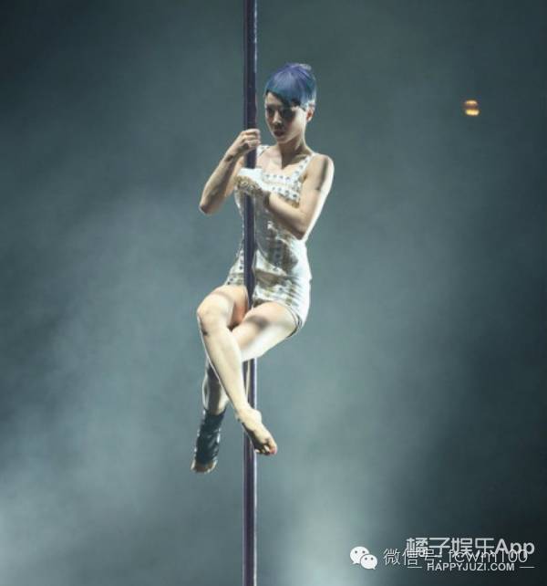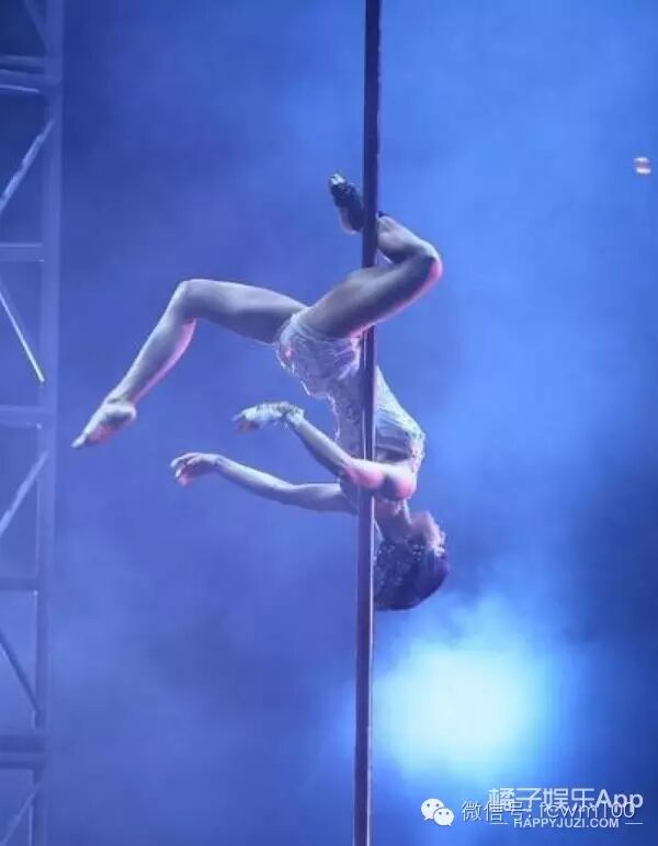跳钢管舞时在90秒时间内展现了12招钢管绝活,倒吊一字马劈腿和高空直立劈腿,而且高空双脱手,堪比专业杂技演员。